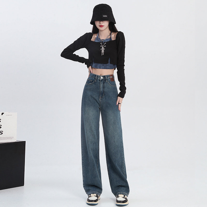Демисезонные ретро штаны, джинсы, свободный крой, облегающий крой