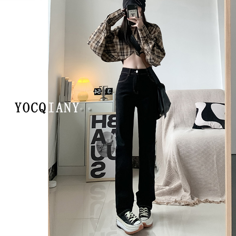 Черные прямые свободные джинсы, длинные штаны, коллекция 2022