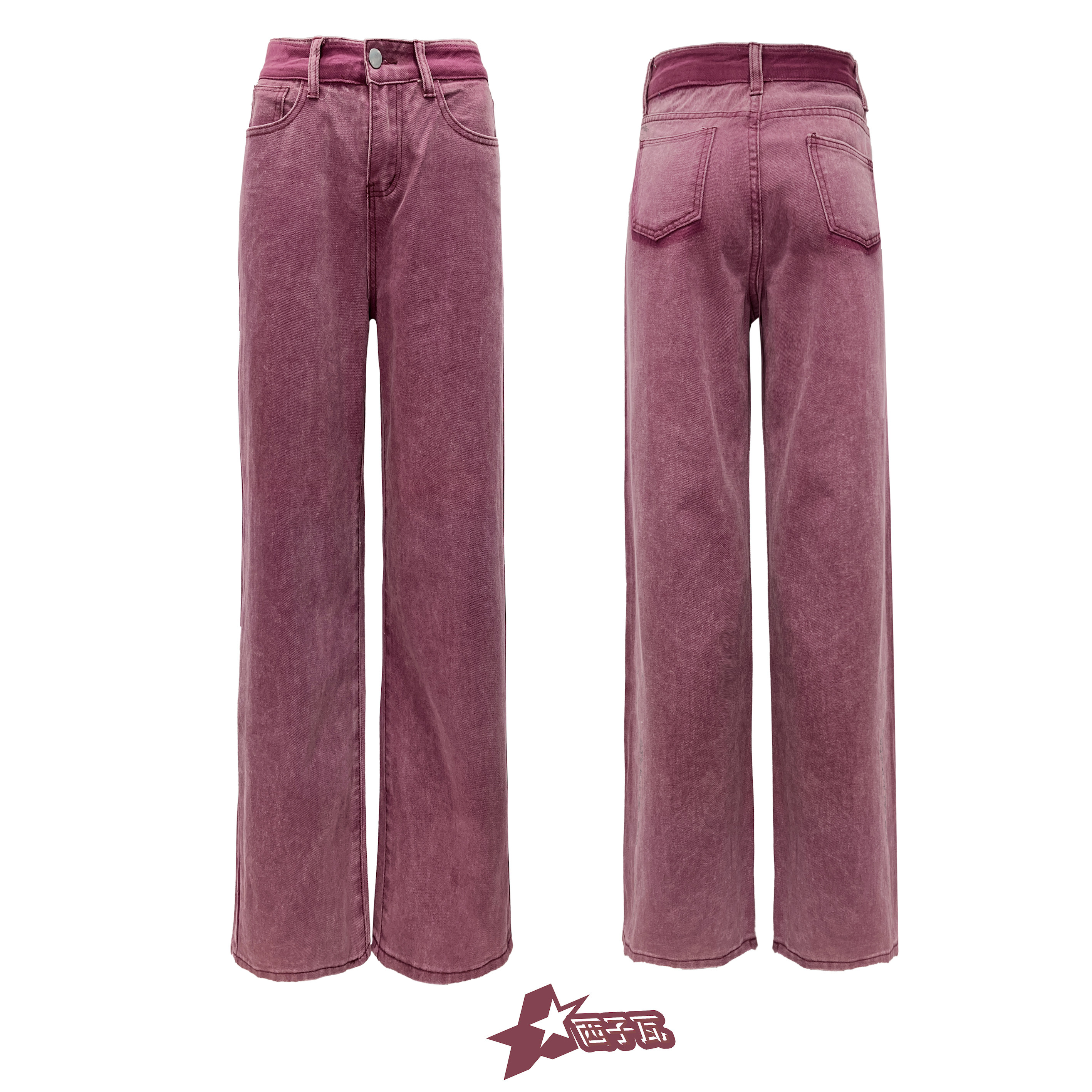 Ягодного цвета Xipi Street универсальные повседневные тонкие горячие девушки потертые хлопковые джинсовые прямые брюки с высокой талией для женщин