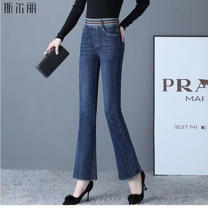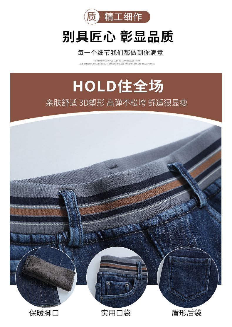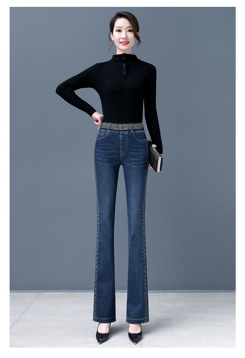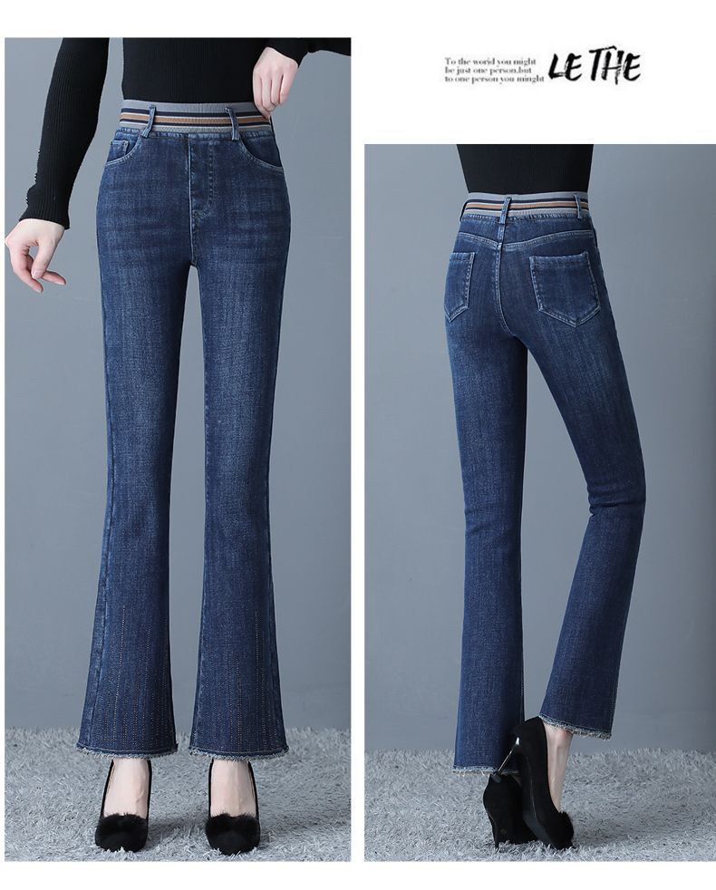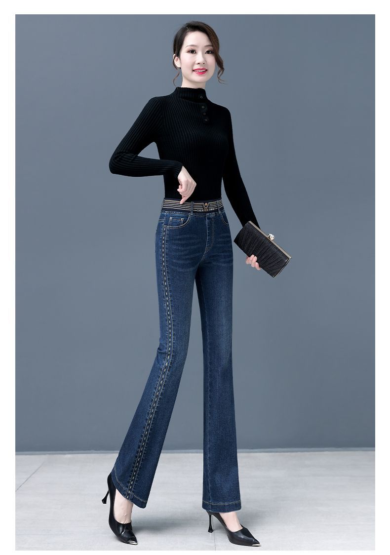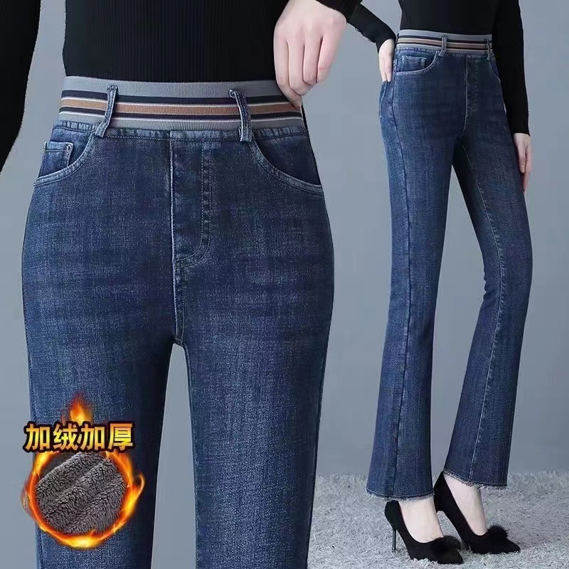Зимние бархатные штаны, джинсы, эластичная талия, по фигуре, с вышивкой