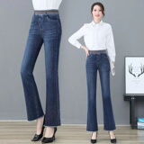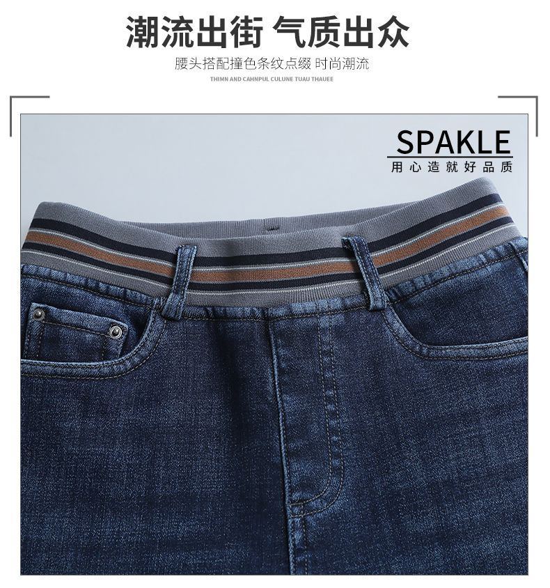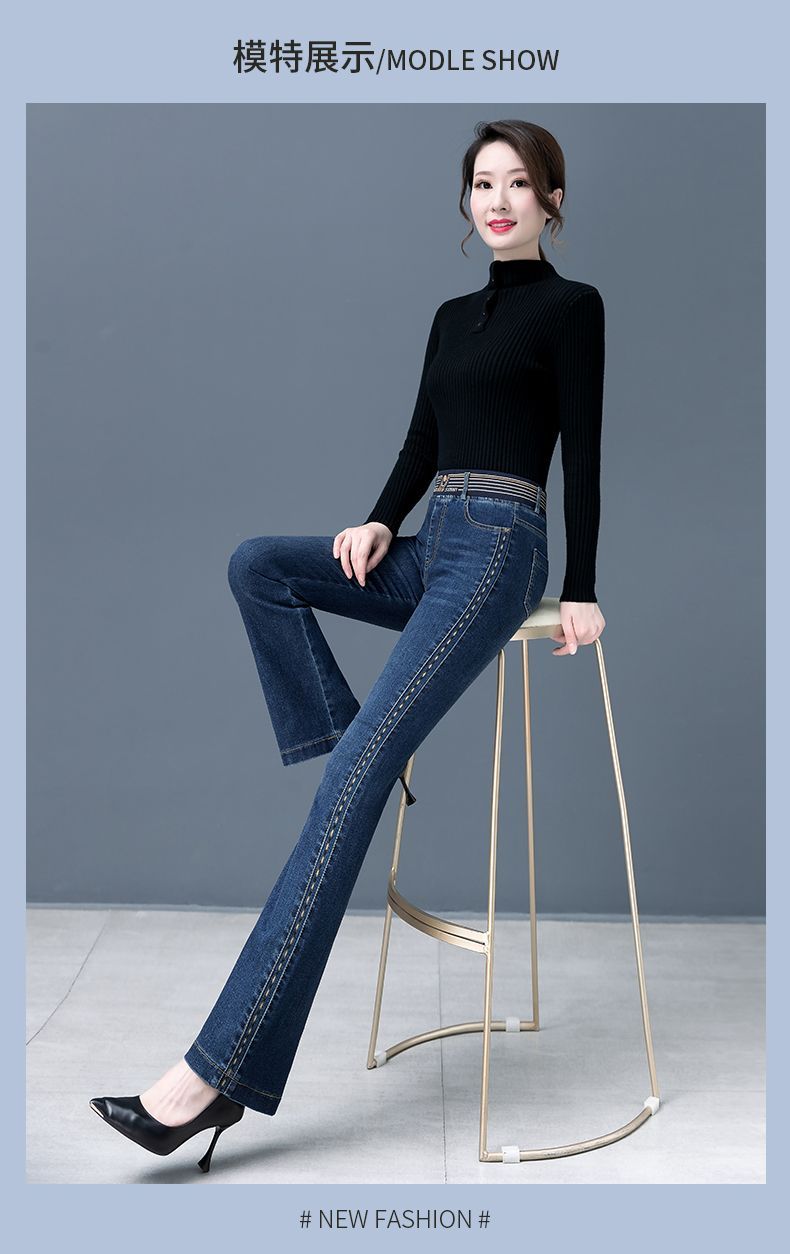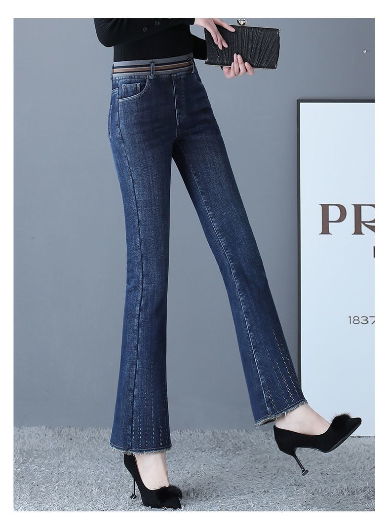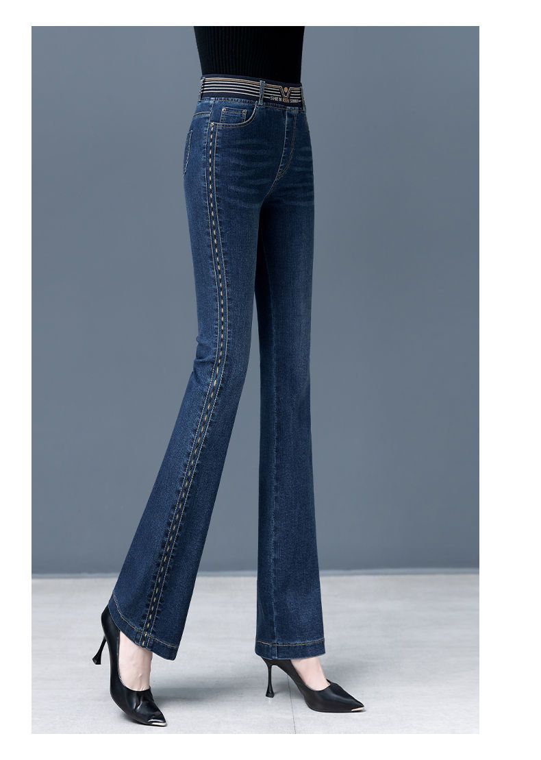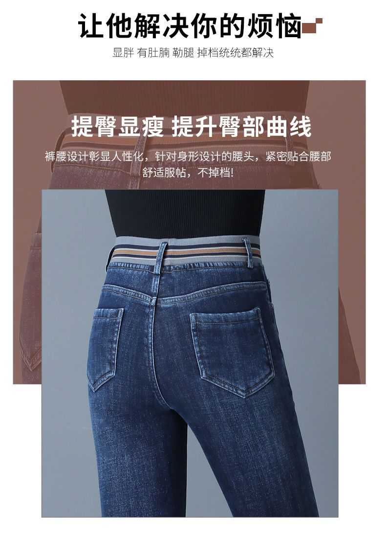 Зимние бархатные штаны, джинсы, эластичная талия, по фигуре, с вышивкой