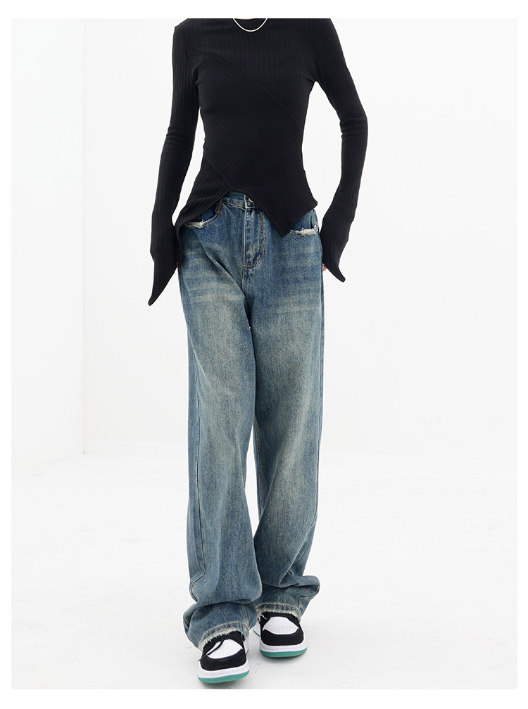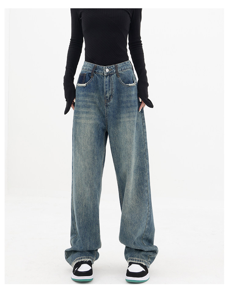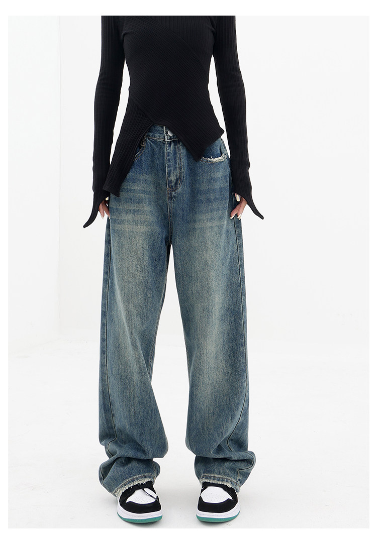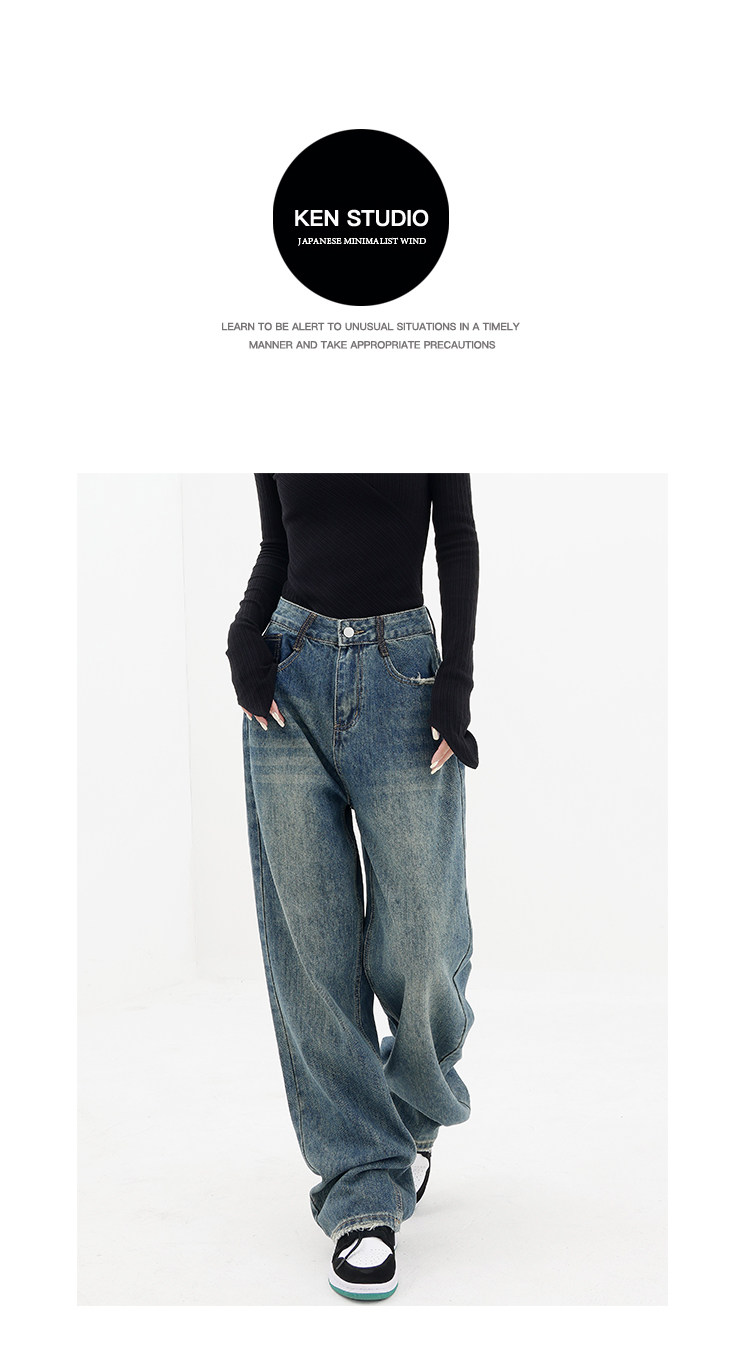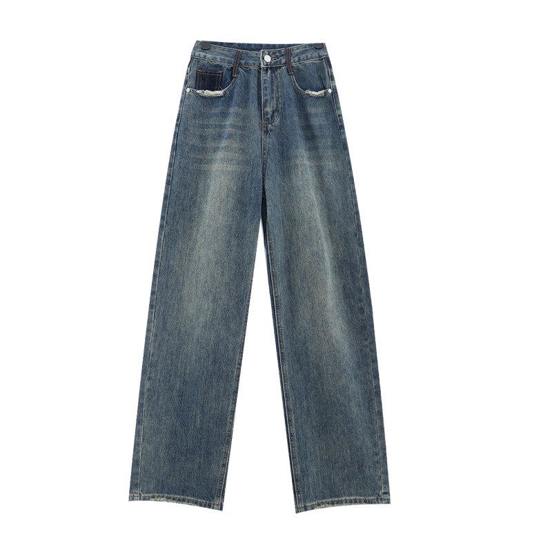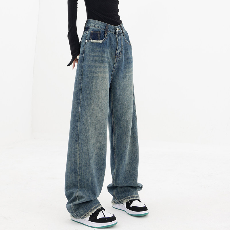 Весенние ретро синие прямые свободные джинсы, приталенные штаны для отдыха, высокая талия
