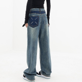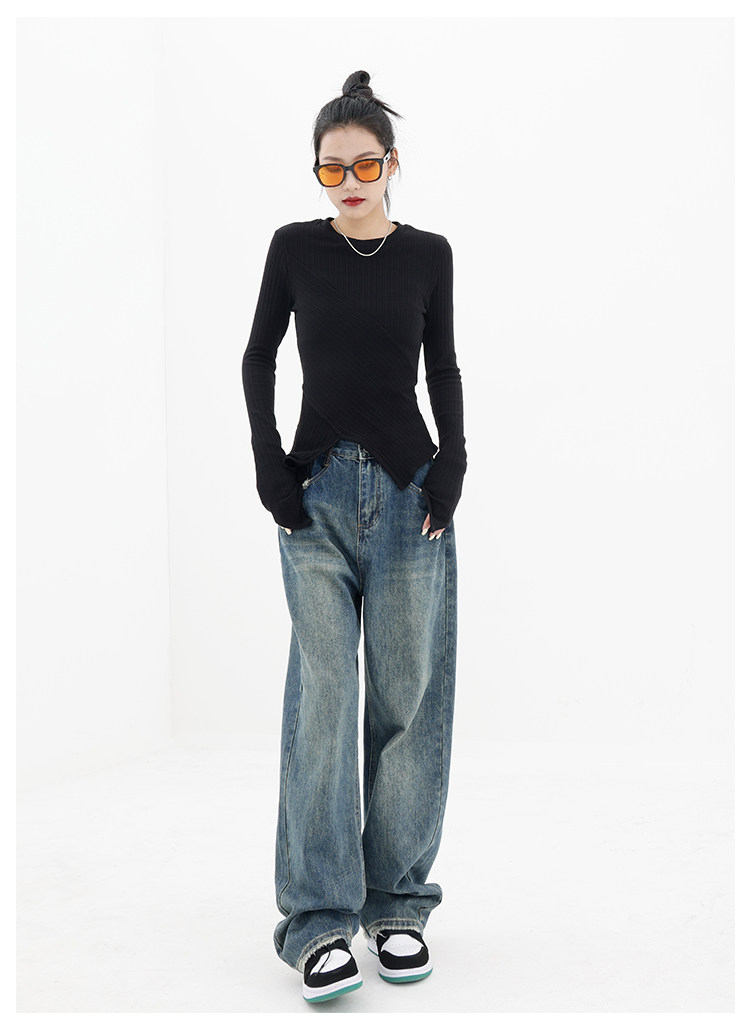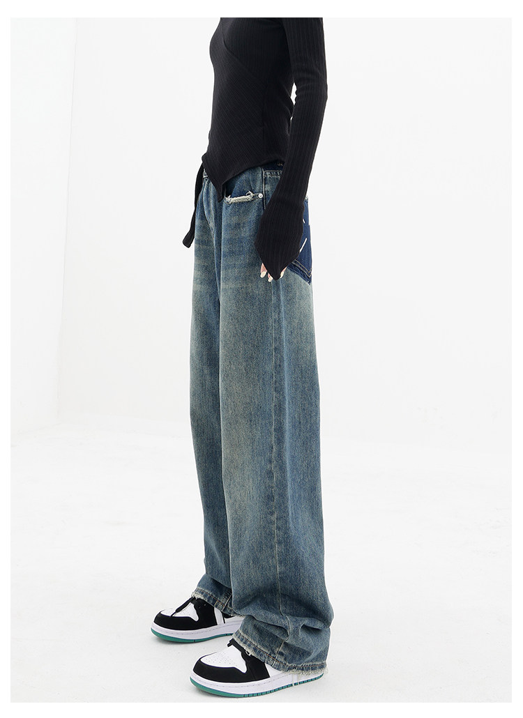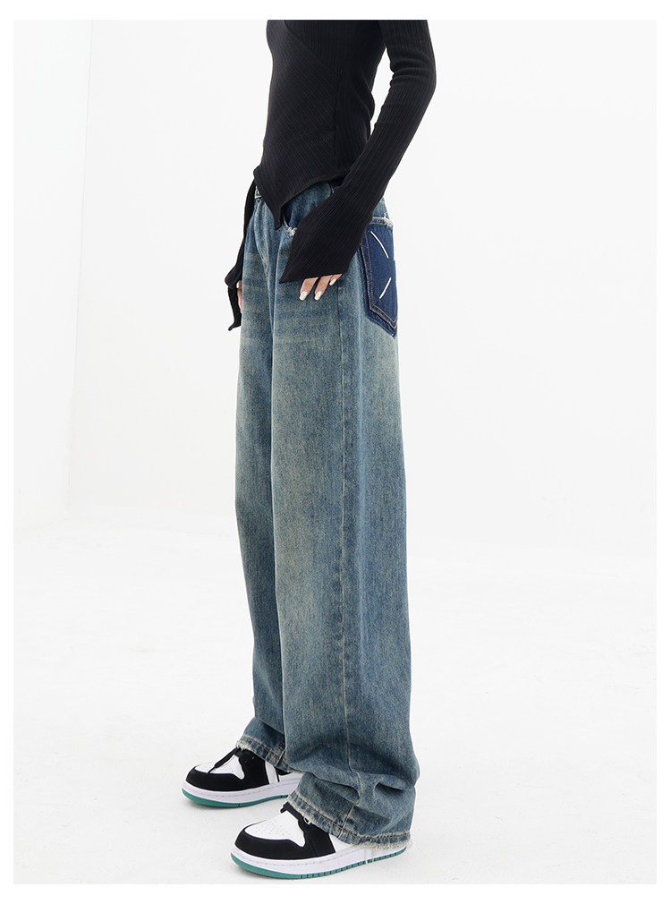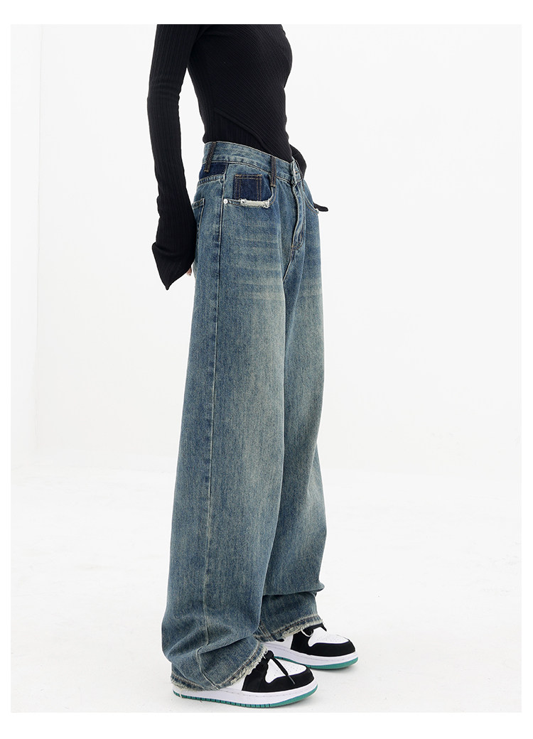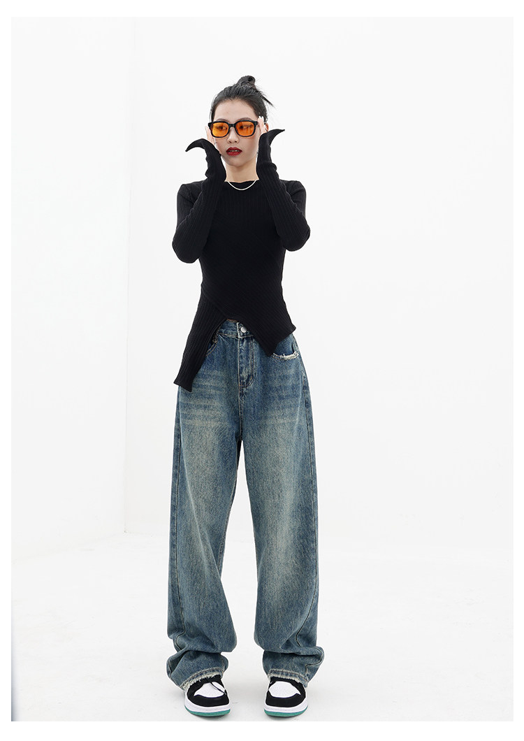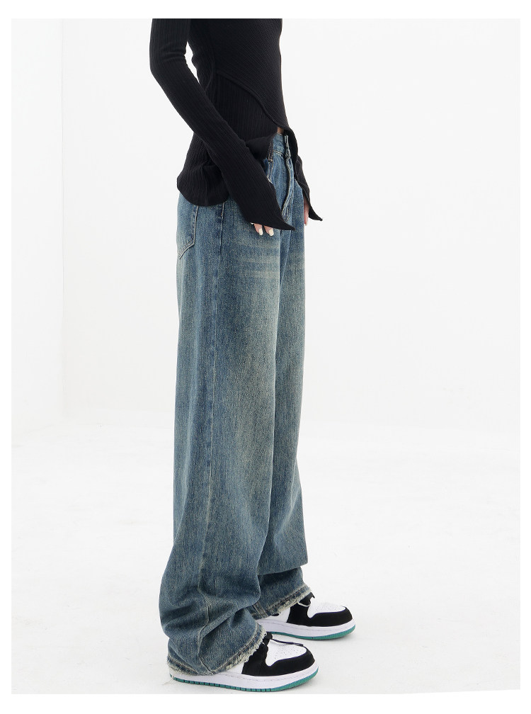 Весенние ретро синие прямые свободные джинсы, приталенные штаны для отдыха, высокая талия