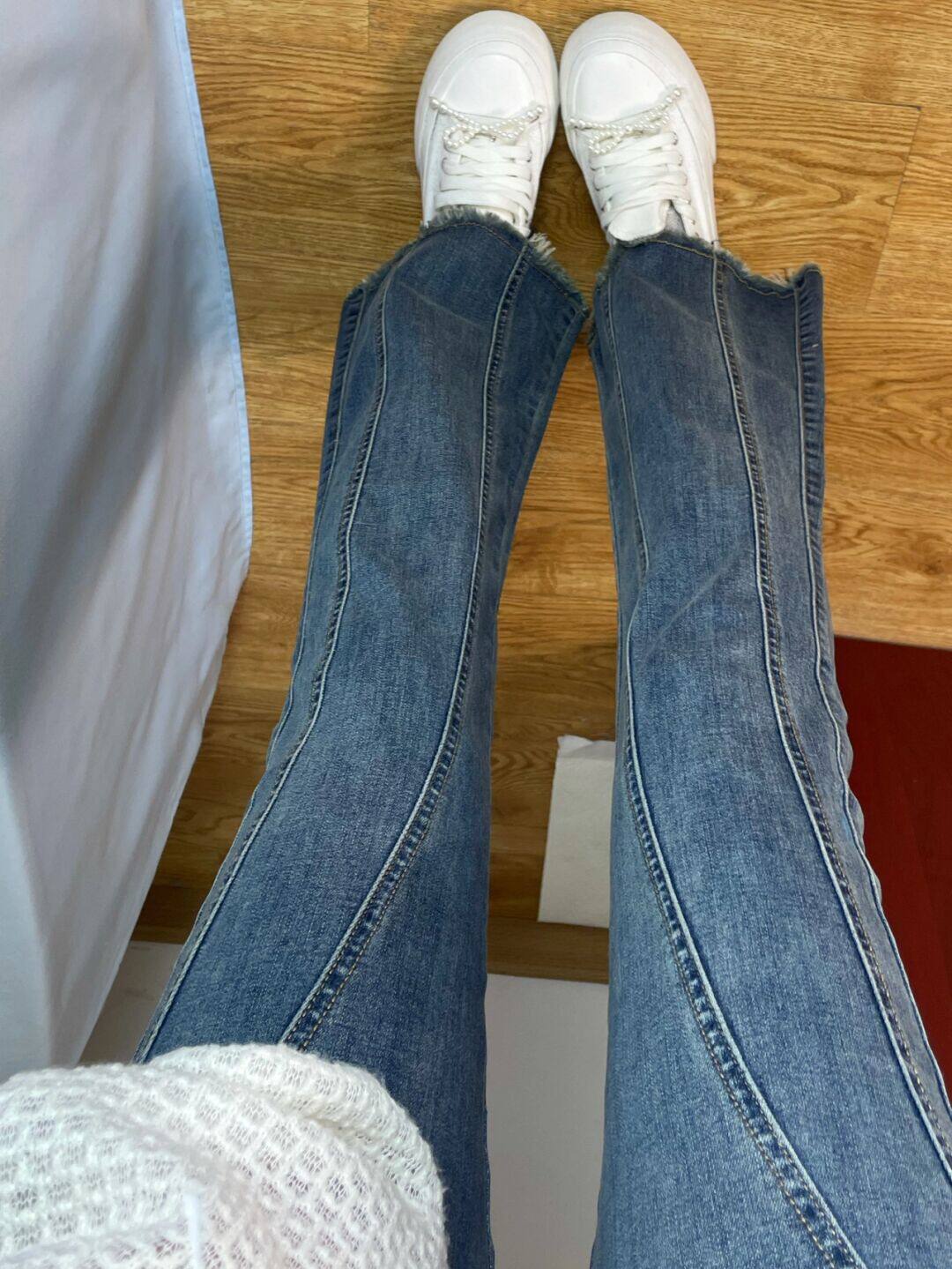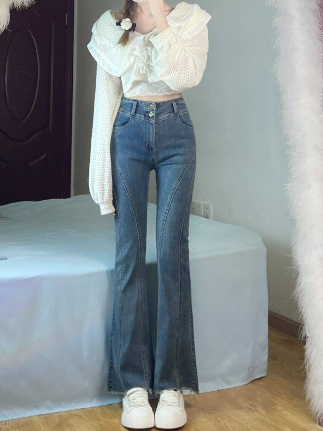 Tide, джинсы, штаны-клёш, весенние штаны, дизайнерская сумка, высокая талия, 2024 года, тренд сезона, новая коллекция, подходят для подростков