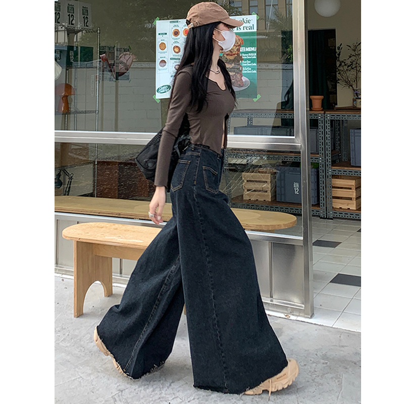 Черные ретро приталенные весенние джинсы, штаны, свободный прямой крой