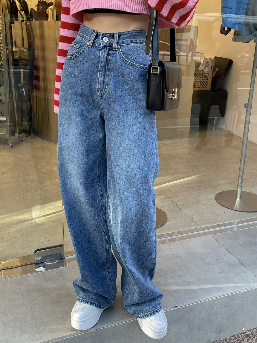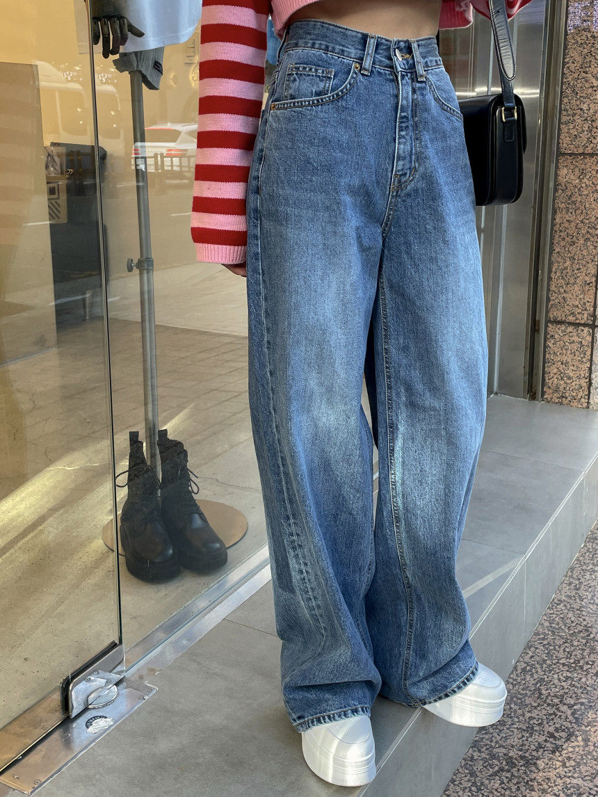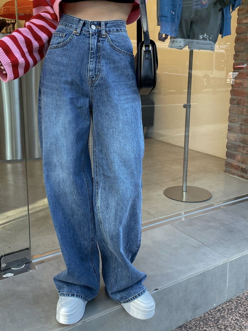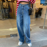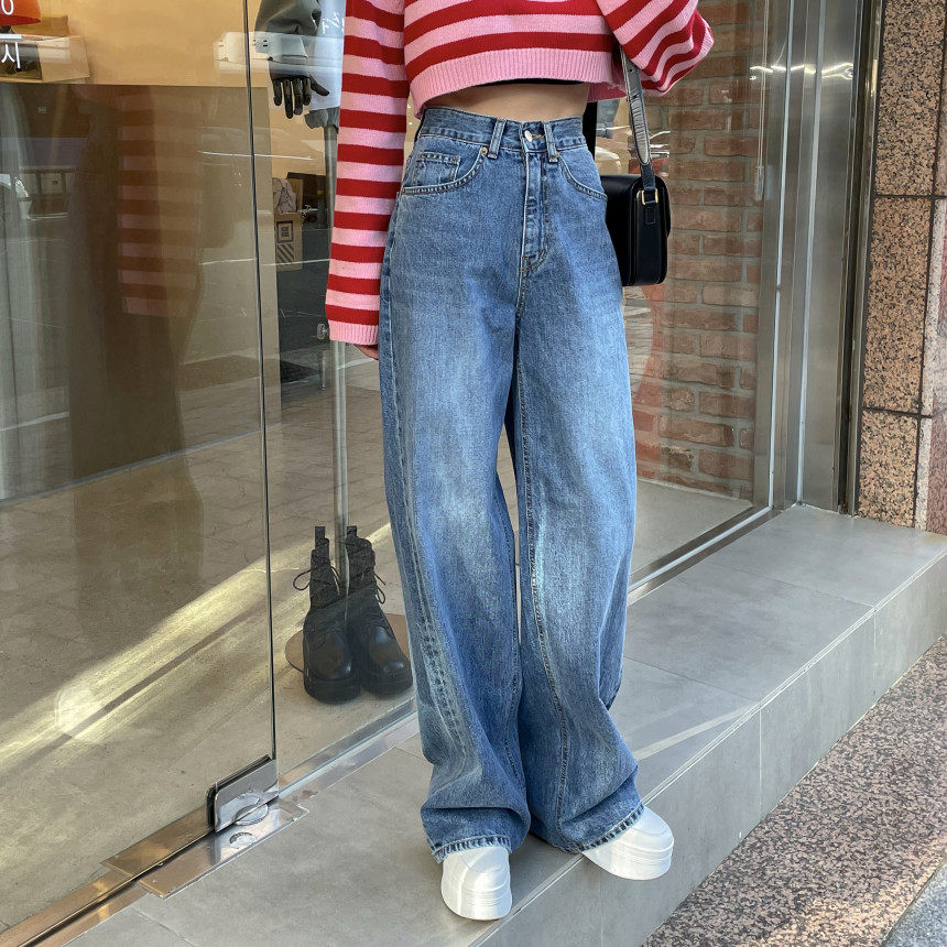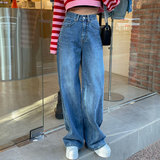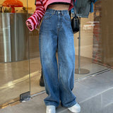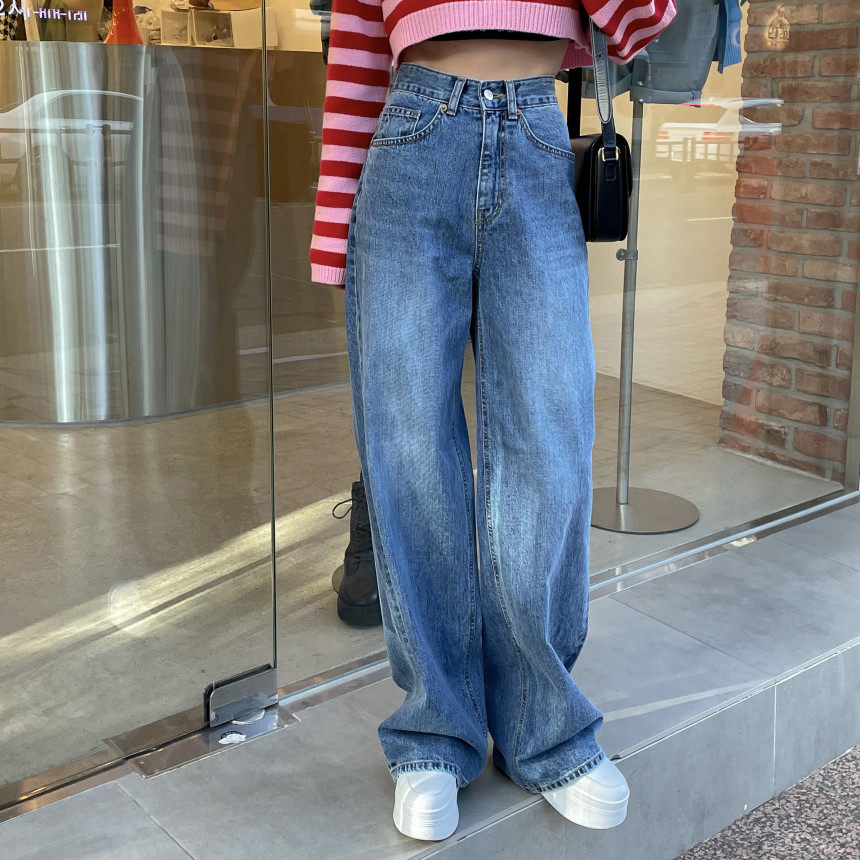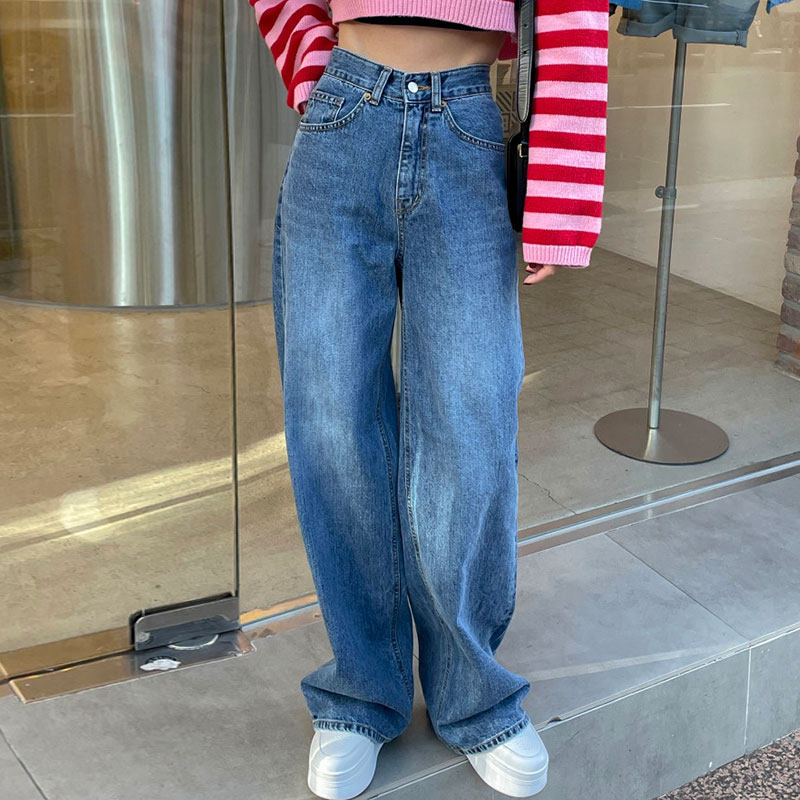 Демисезонные ретро джинсы, штаны, в корейском стиле, высокая талия, свободный прямой крой