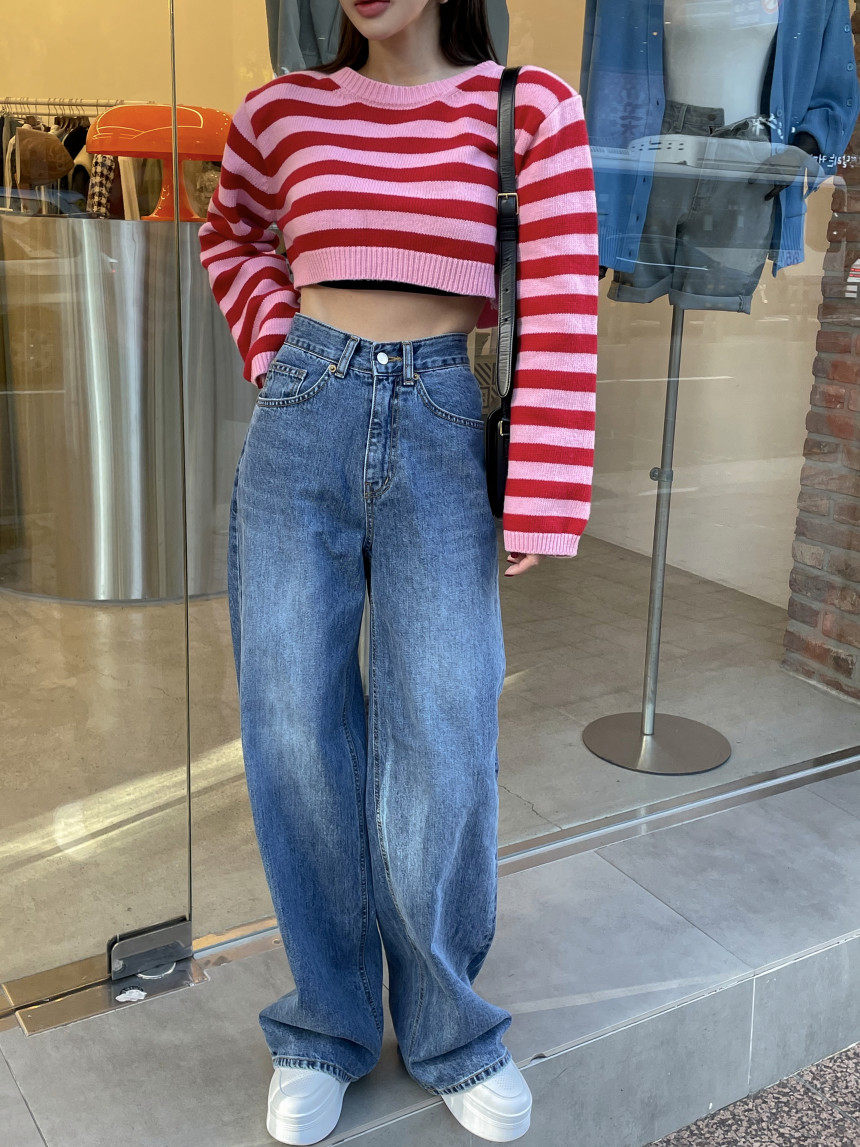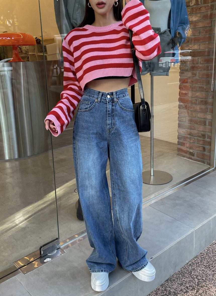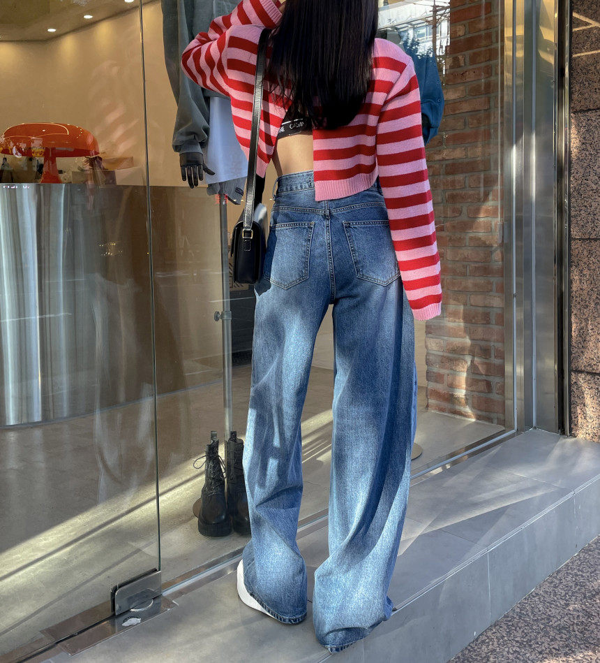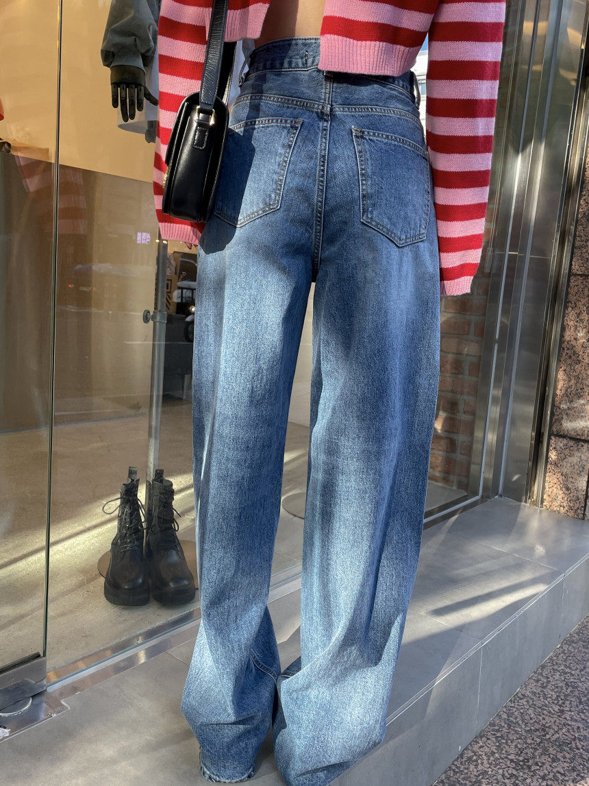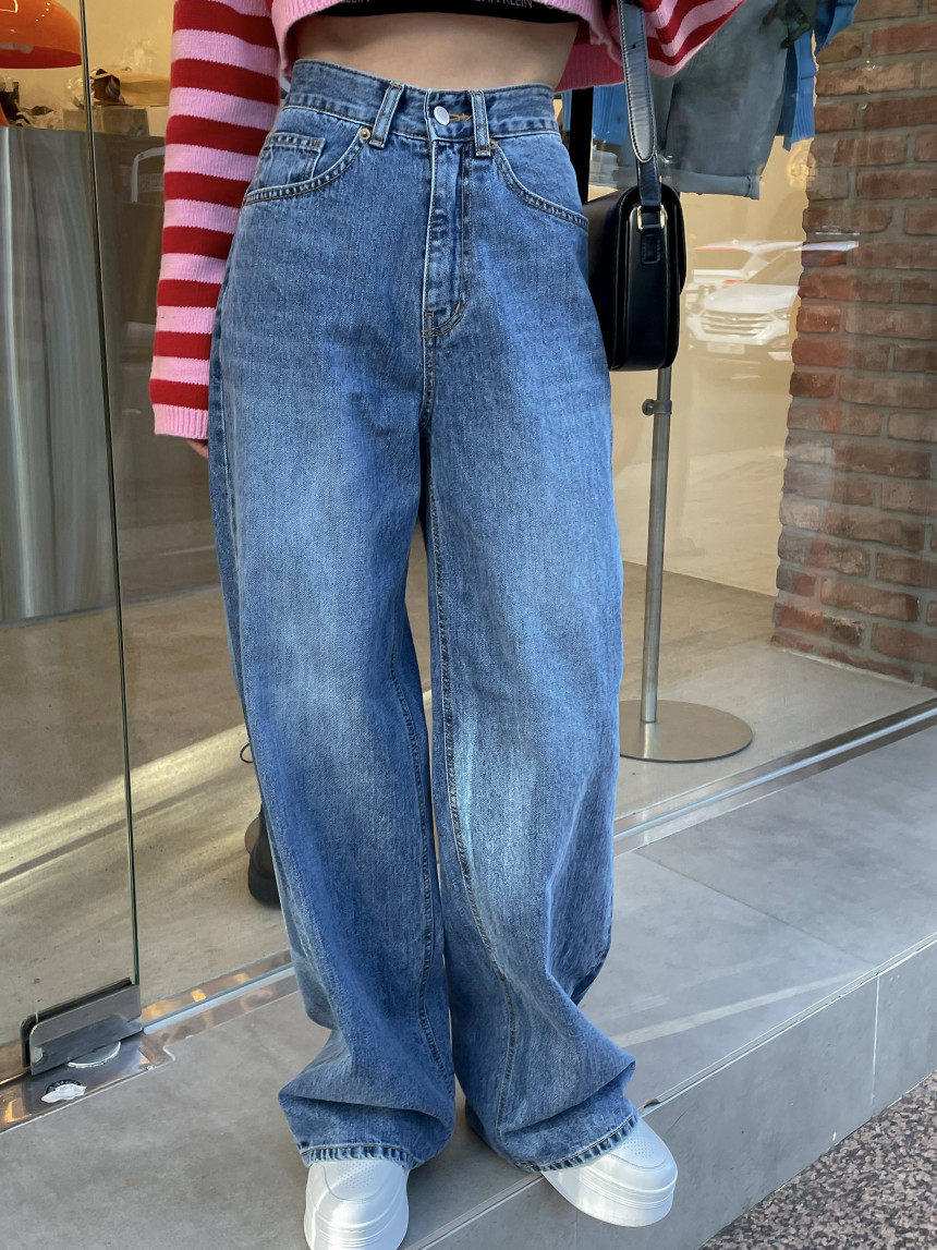 Демисезонные ретро джинсы, штаны, в корейском стиле, высокая талия, свободный прямой крой