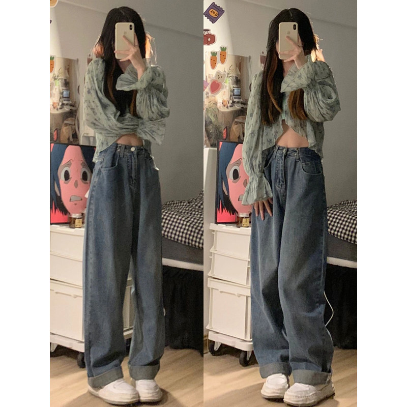 Осенние джинсы, штаны, приталенные ретро леггинсы, в корейском стиле, большой размер, высокая талия, свободный прямой крой