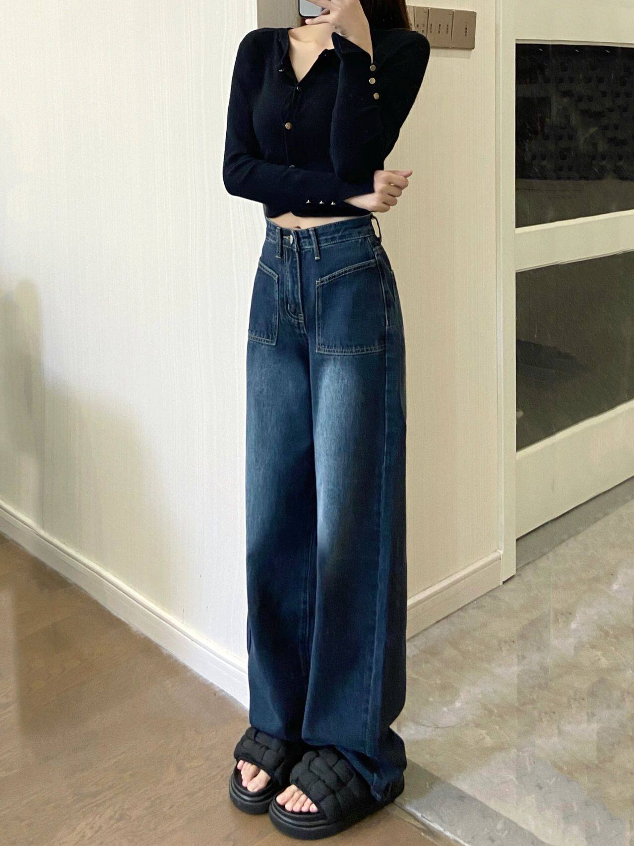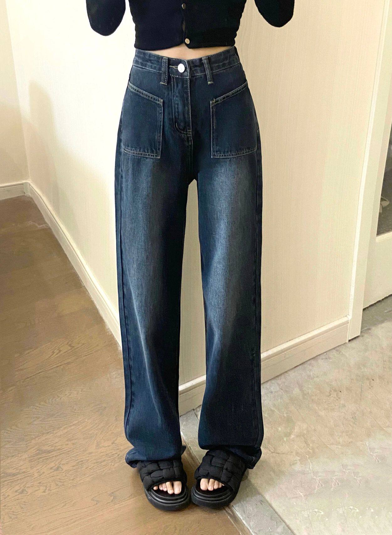 Ретро джинсы, осенние штаны, свободный прямой крой, большой размер, высокая талия, коллекция 2023
