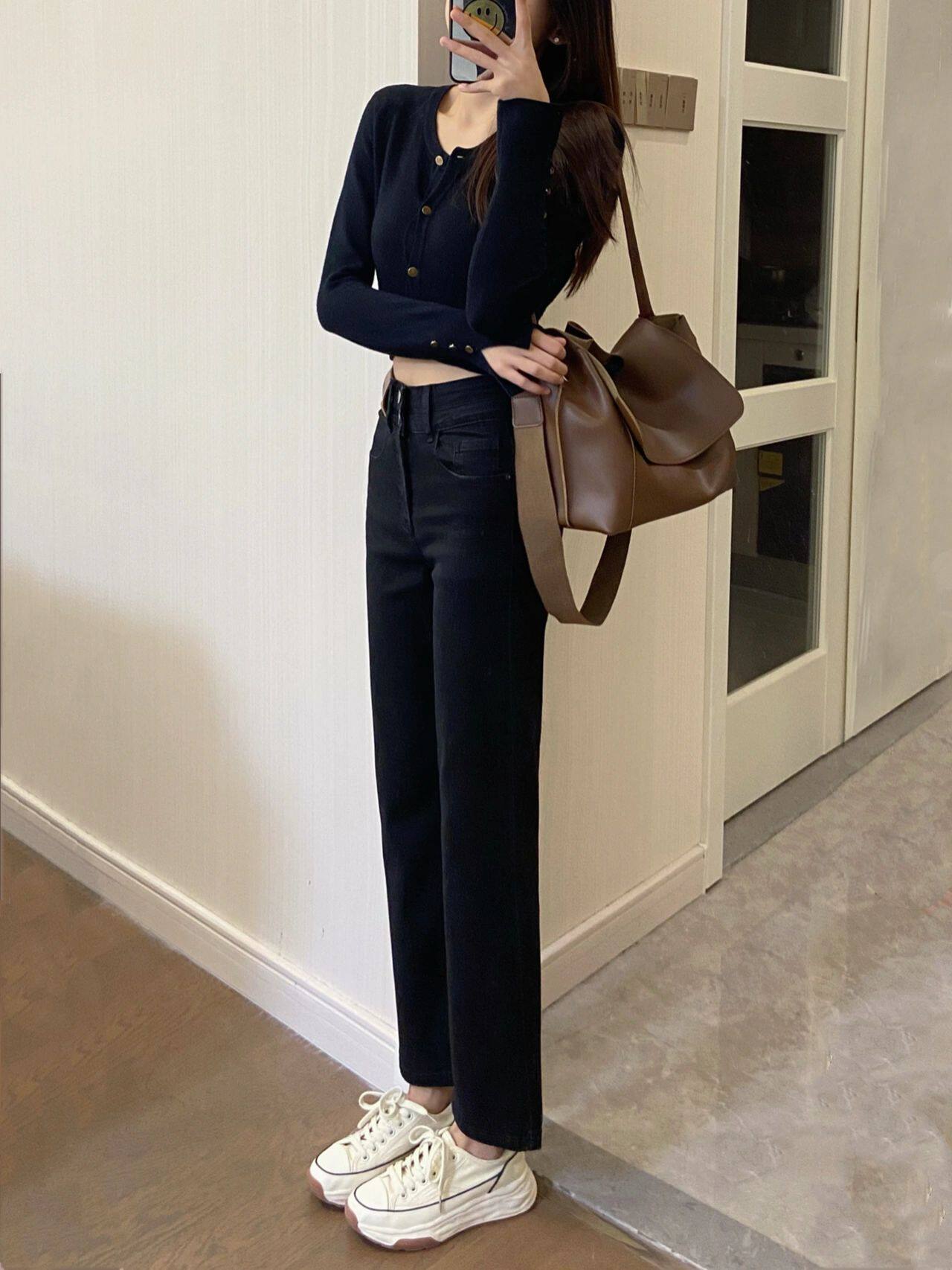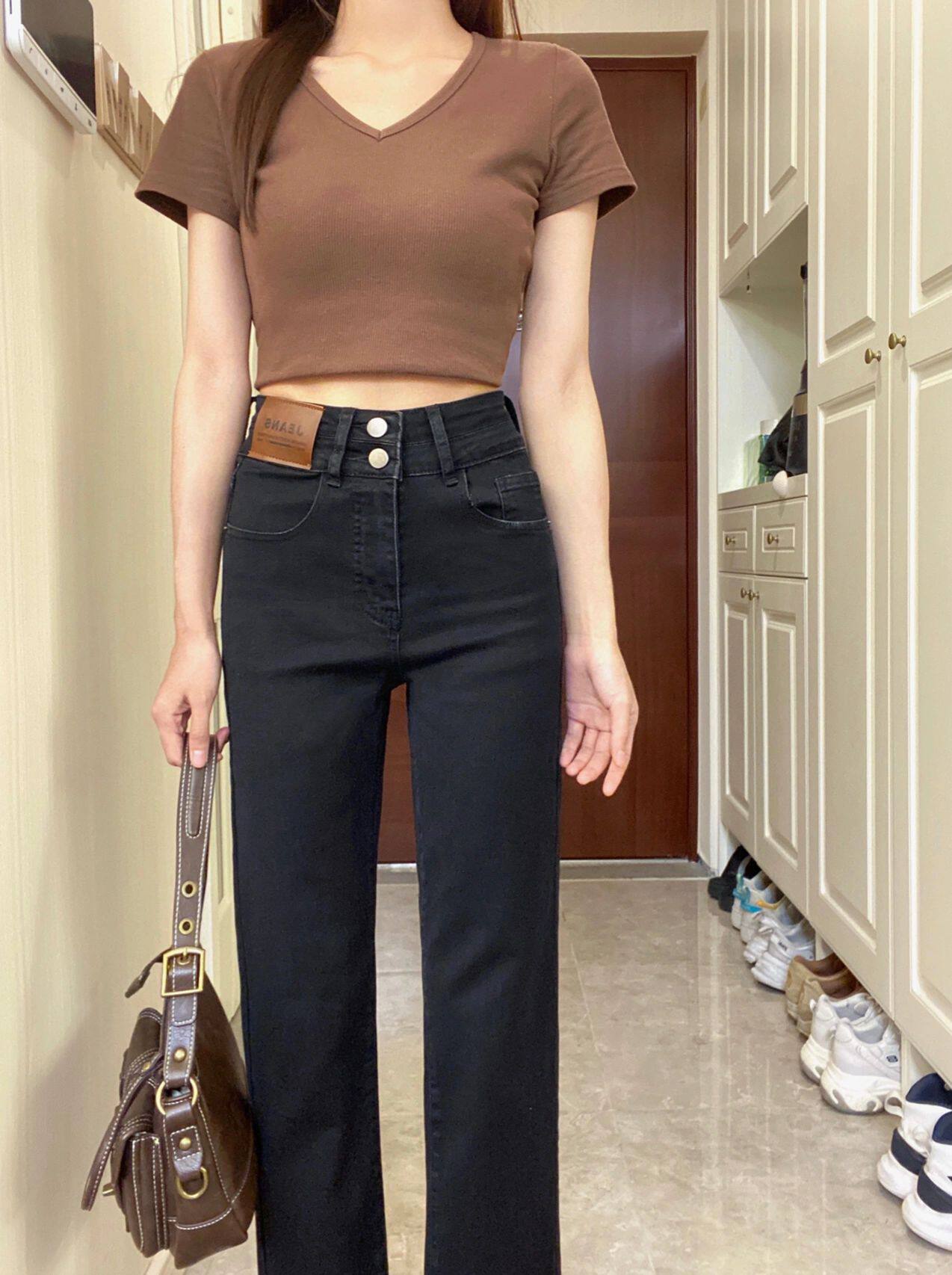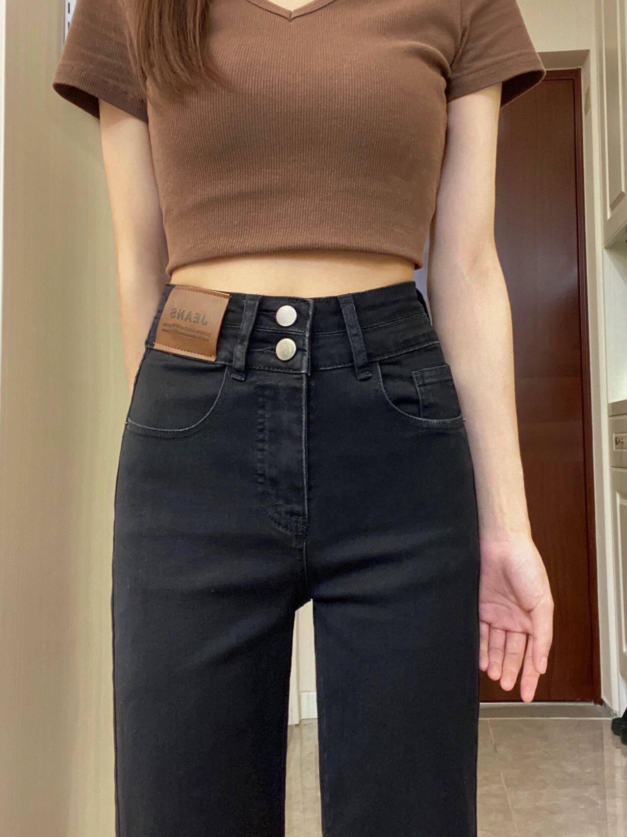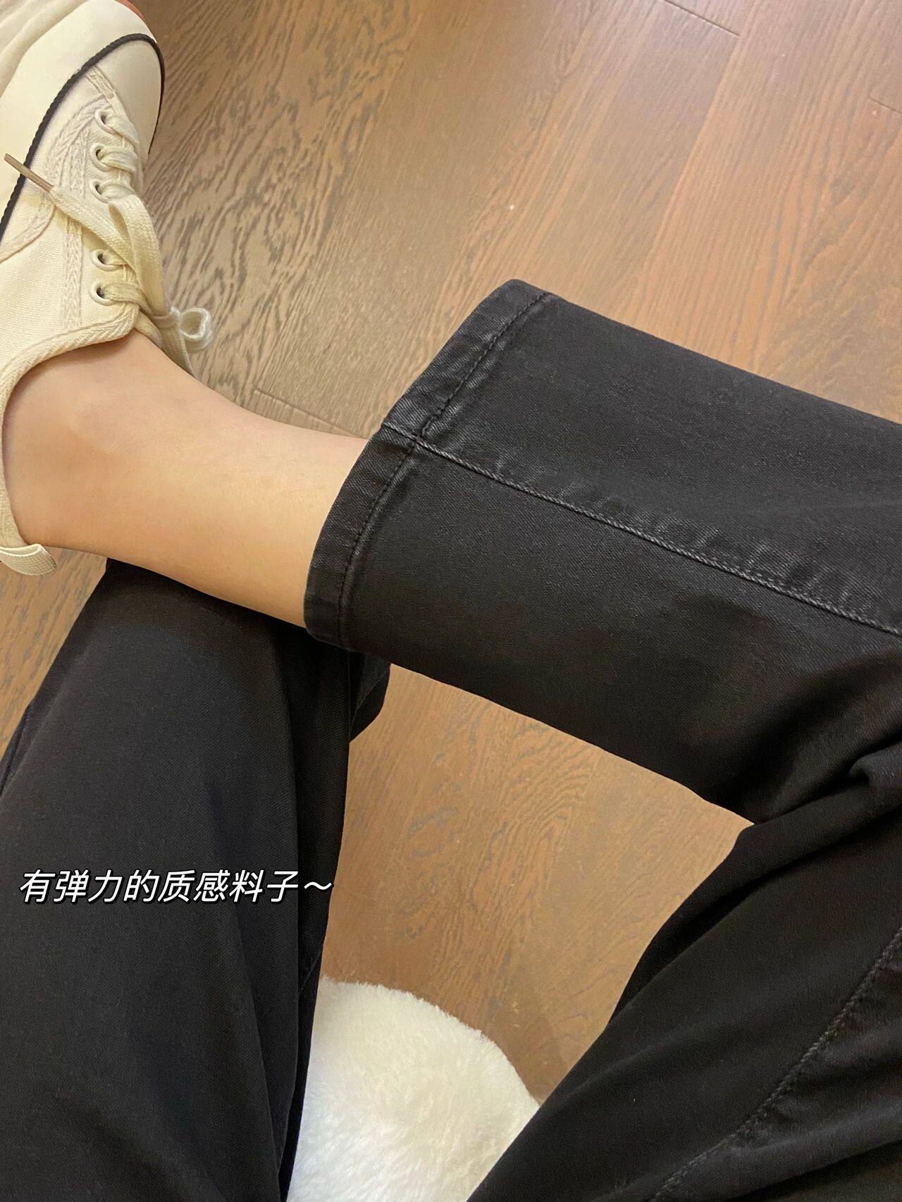 Черные весенние прямые свободные джинсы, приталенные штаны, высокая талия, большой размер, подходят для подростков