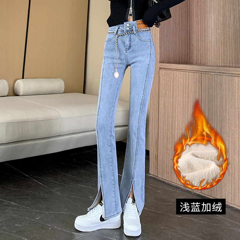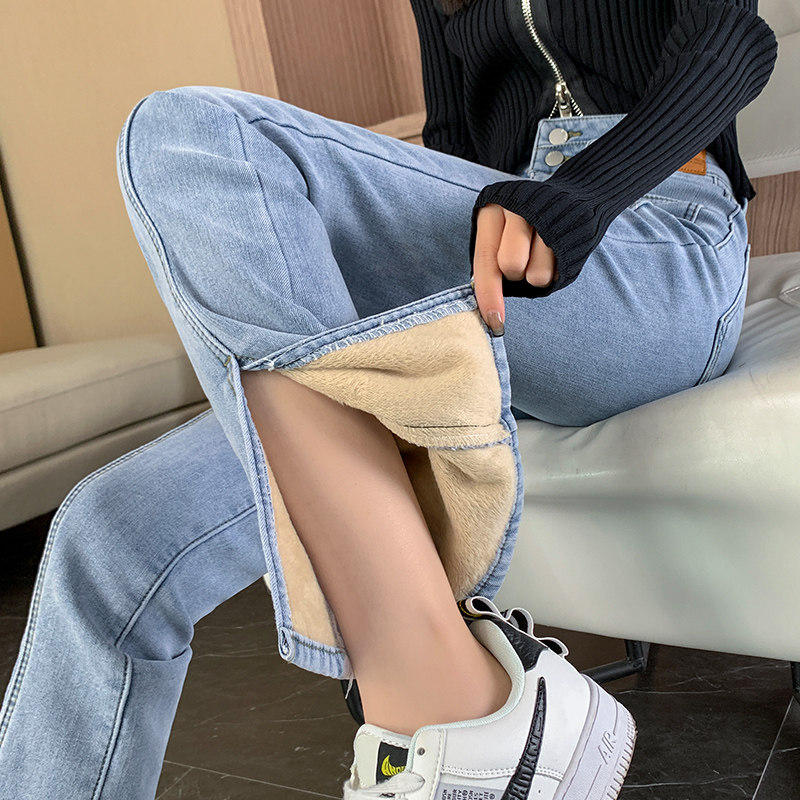 Мегафон, джинсовые джинсы, утепленные демисезонные штаны, коллекция 2022, высокая талия, свободный прямой крой