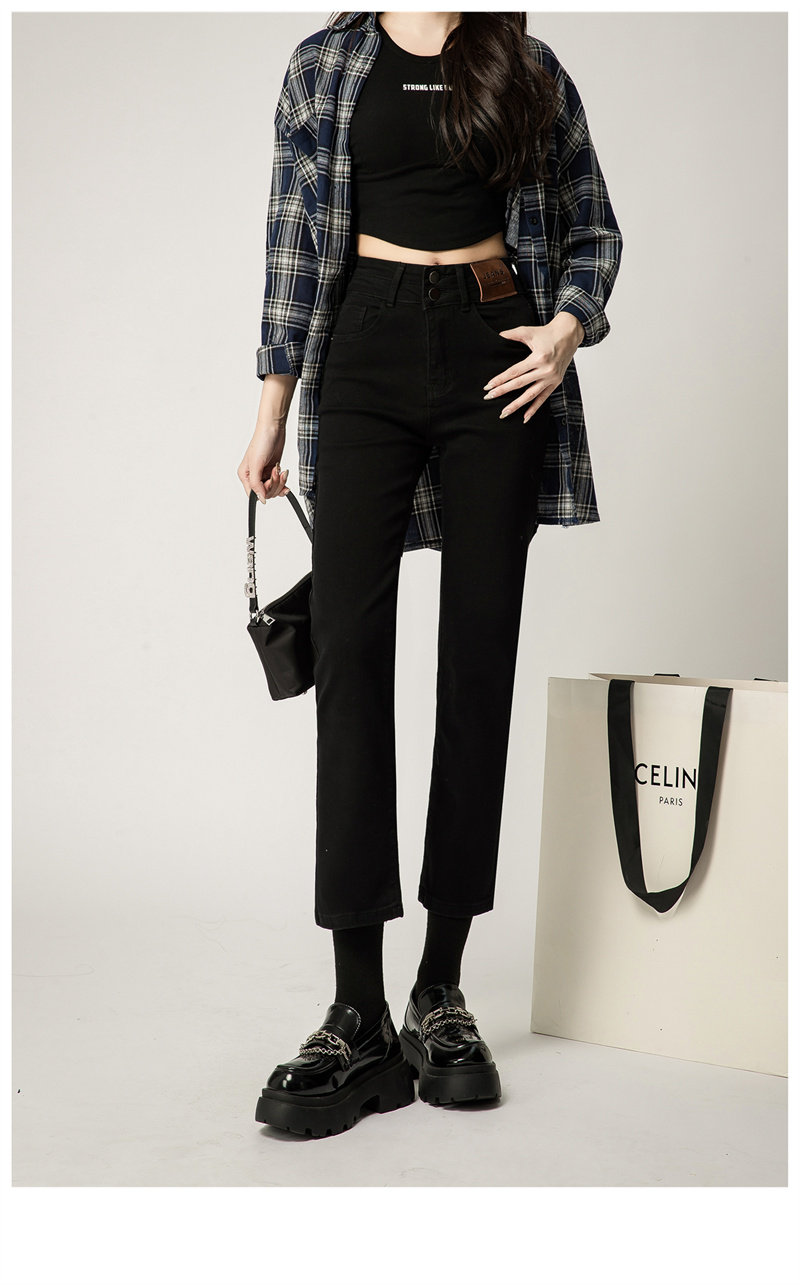 Приталенные эластичные прямые свободные джинсы, штаны, высокая талия, коллекция 2023