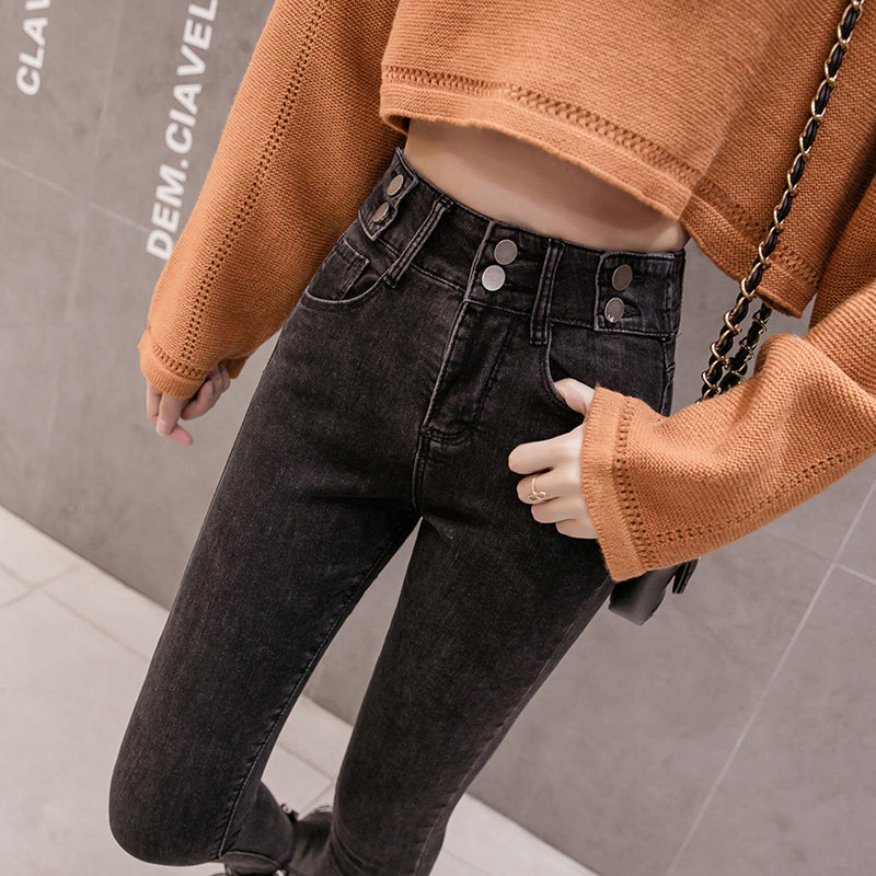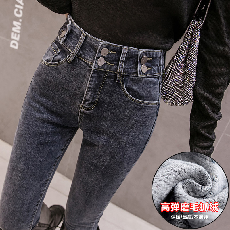 Модные демисезонные штаны, эластичные флисовые джинсы, 2023 года, в обтяжку, высокая талия, по фигуре