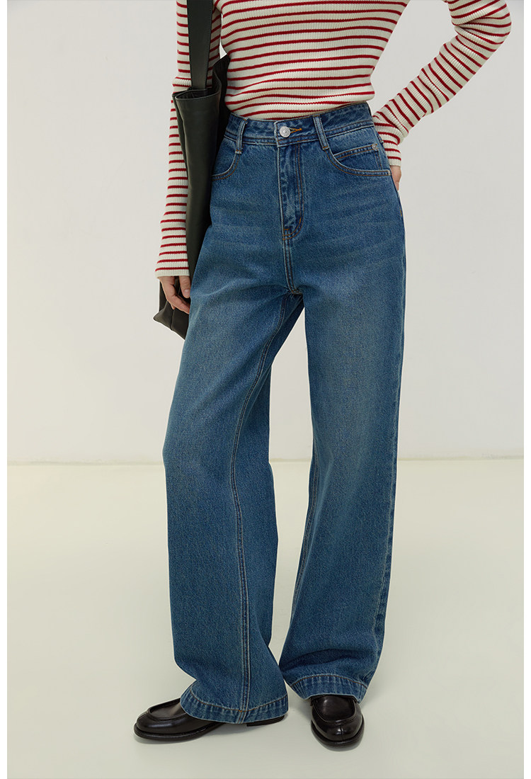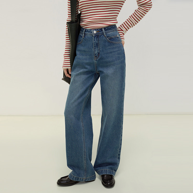 Демисезонные ретро джинсы, приталенные штаны, высокая талия, свободный прямой крой