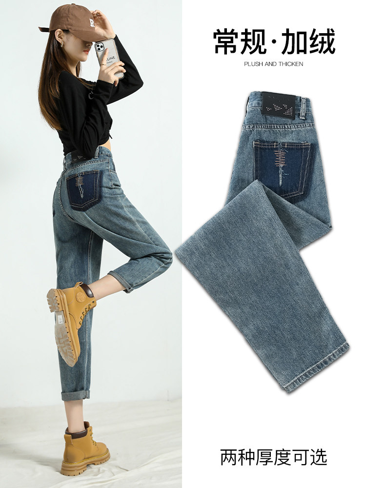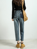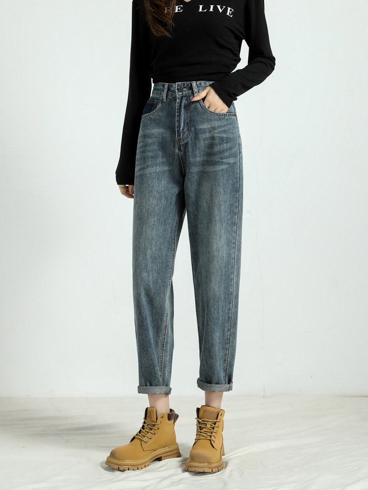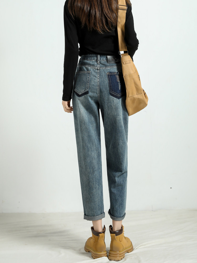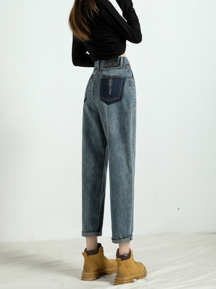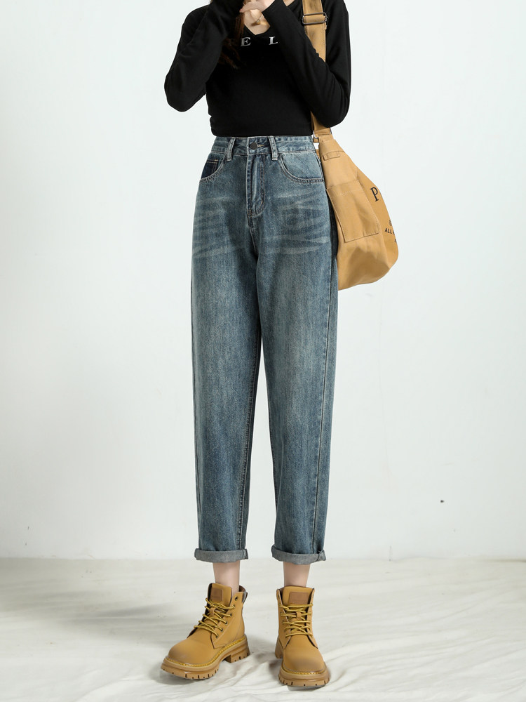 Штаны, демисезонные джинсы, ретро дизайнерские леггинсы, высокая талия, оверсайз, свободный крой
