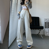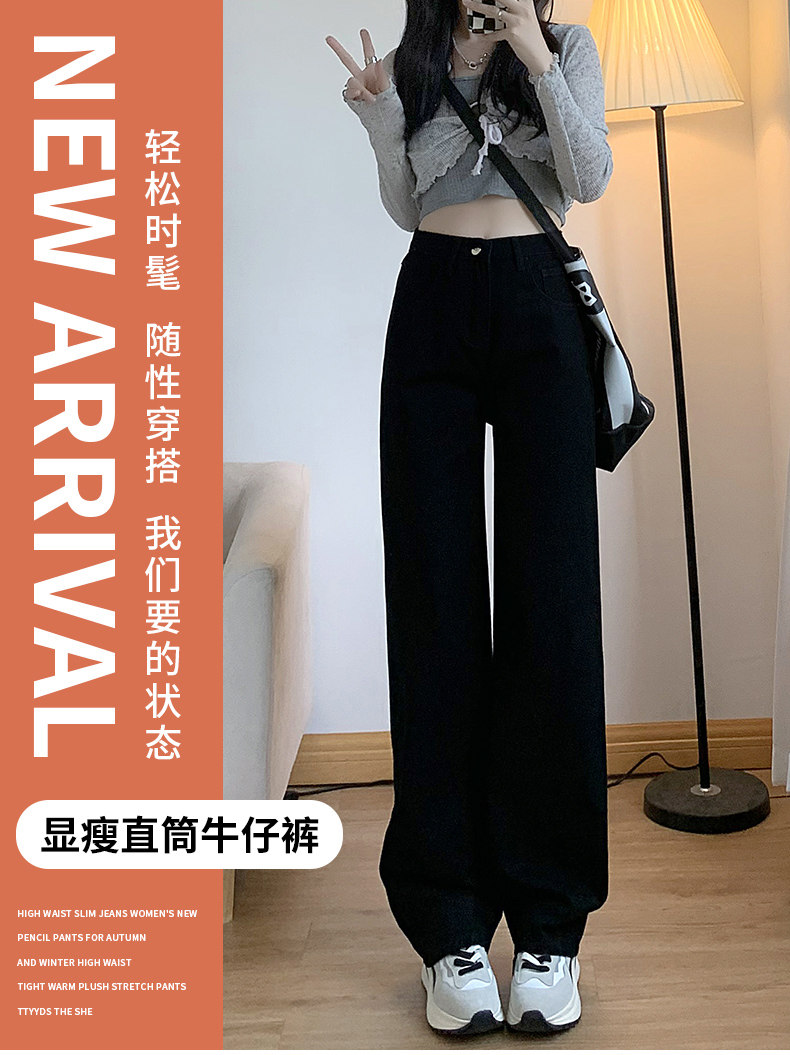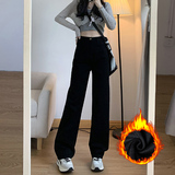 Прямые свободные джинсы, демисезонные утепленные штаны, высокая талия, свободный крой, по фигуре