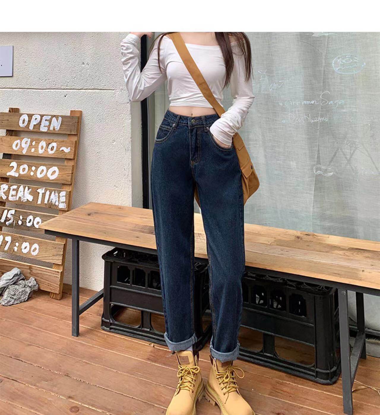 Демисезонные джинсы, штаны, большой размер, высокая талия, свободный прямой крой, по фигуре