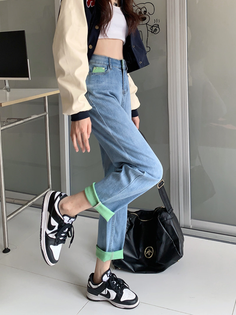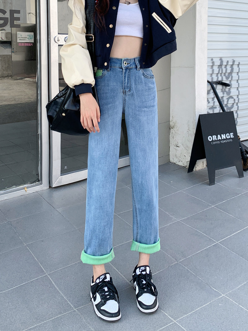 Осенние дизайнерские прямые свободные джинсы, штаны, 2023, тренд сезона, большой размер, высокая талия