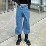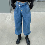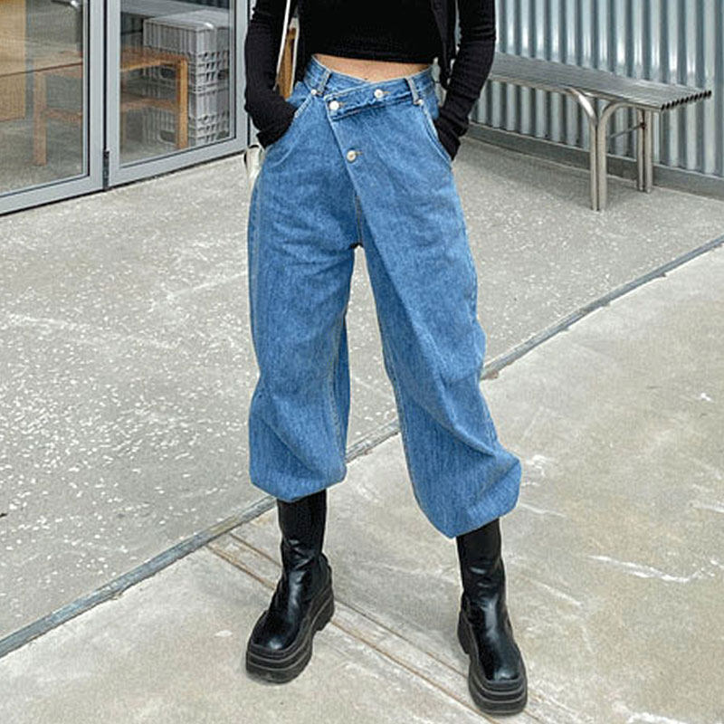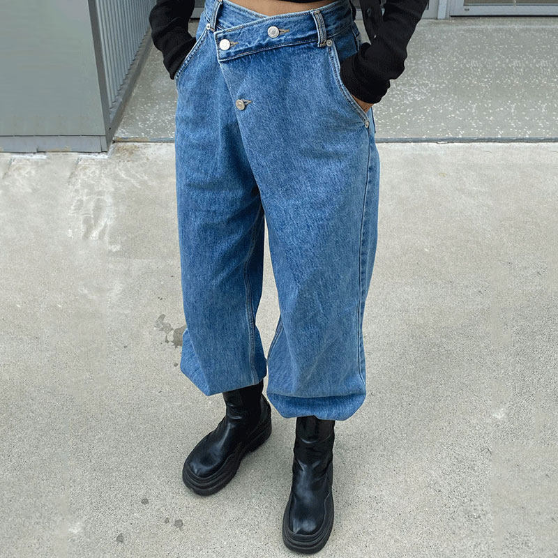 Демисезонные ретро дизайнерские джинсы, штаны, в корейском стиле, яркий броский стиль, высокая талия, тренд сезона, свободный прямой крой