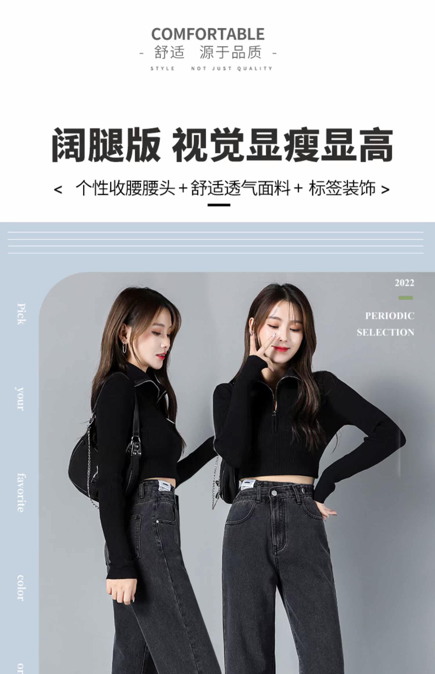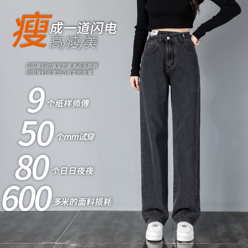 Демисезонные джинсы, штаны, высокая талия, по фигуре, свободный прямой крой