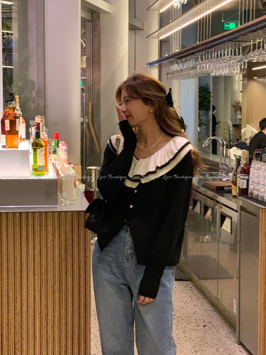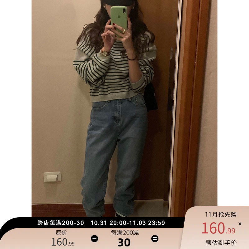 Синие джинсы, весенние дизайнерские штаны, свободный прямой крой, стройный силуэт, в корейском стиле, коллекция 2022, тренд сезона