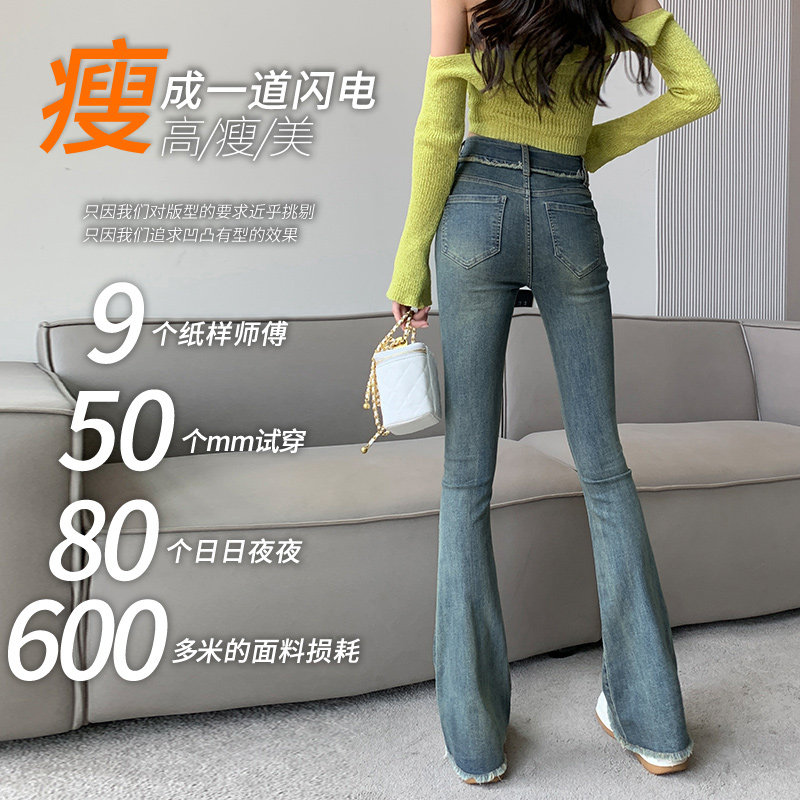 Ретро демисезонные джинсы, штаны, леггинсы, дизайнерские приталенные штаны-клёш, новая коллекция, высокая талия