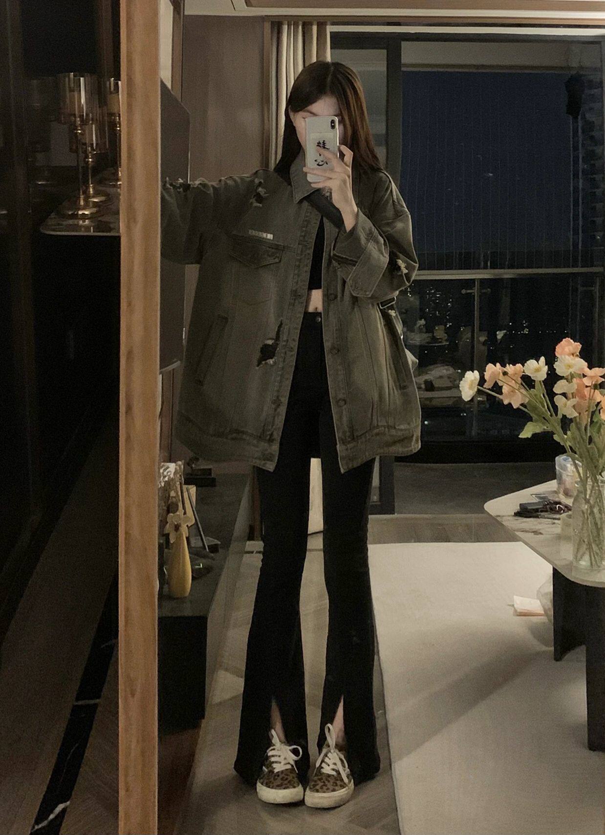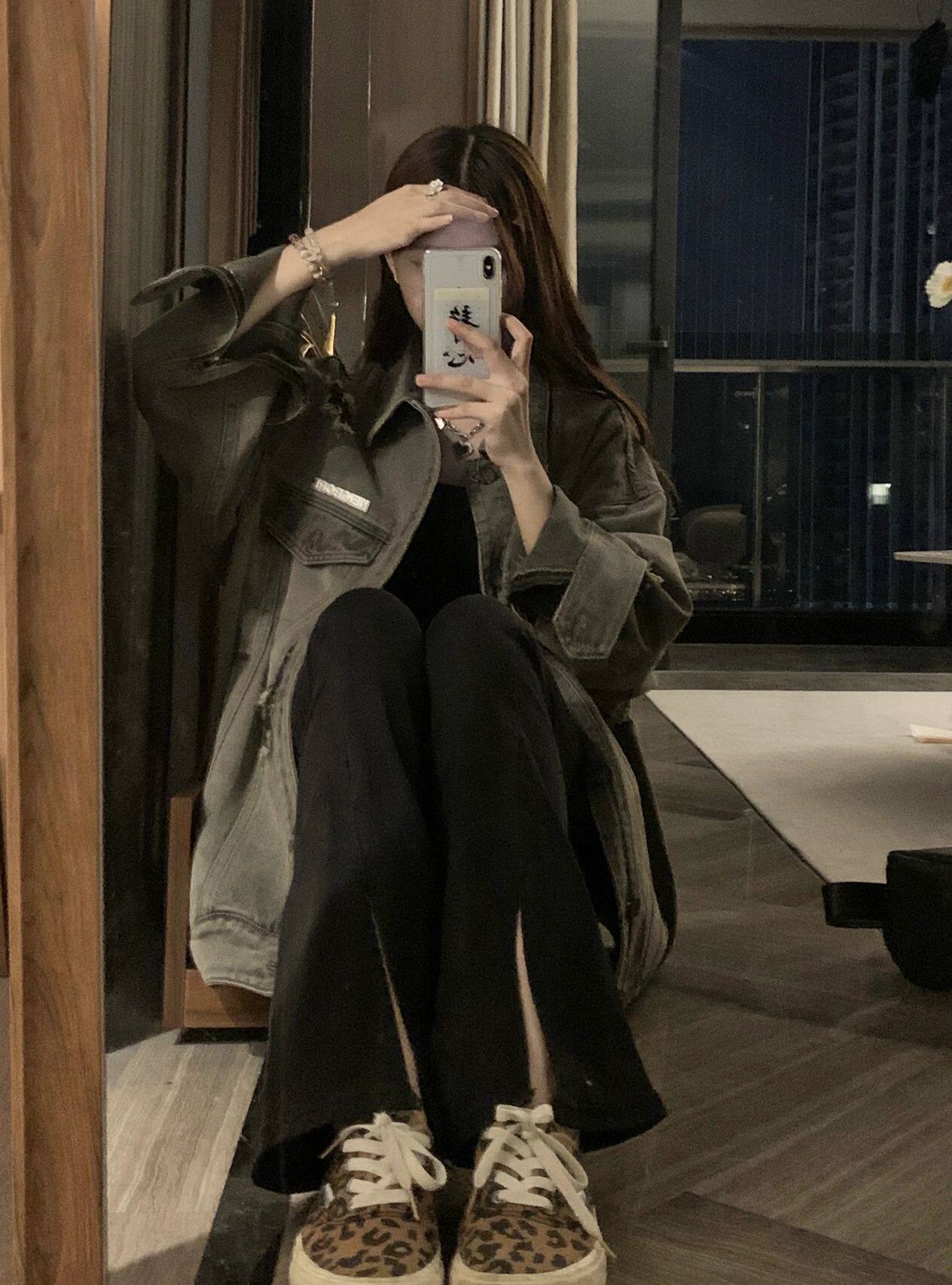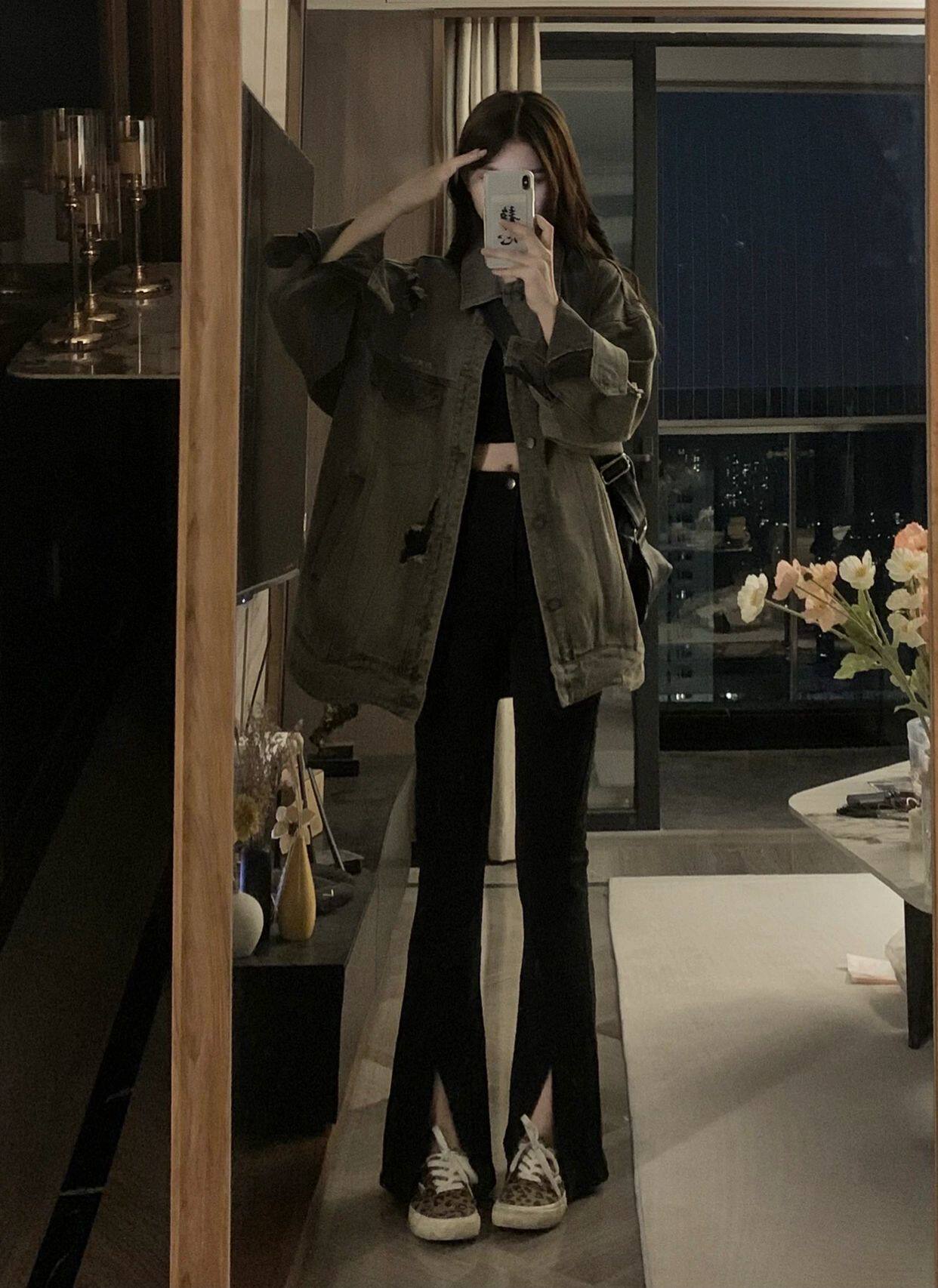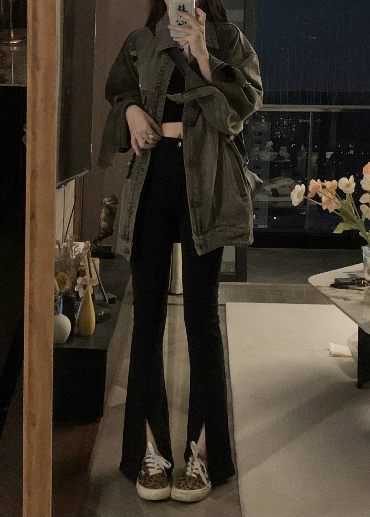 Черный мегафон, джинсовые демисезонные джинсы, эластичные штаны, коллекция 2022, высокая талия, свободный прямой крой, стройный силуэт