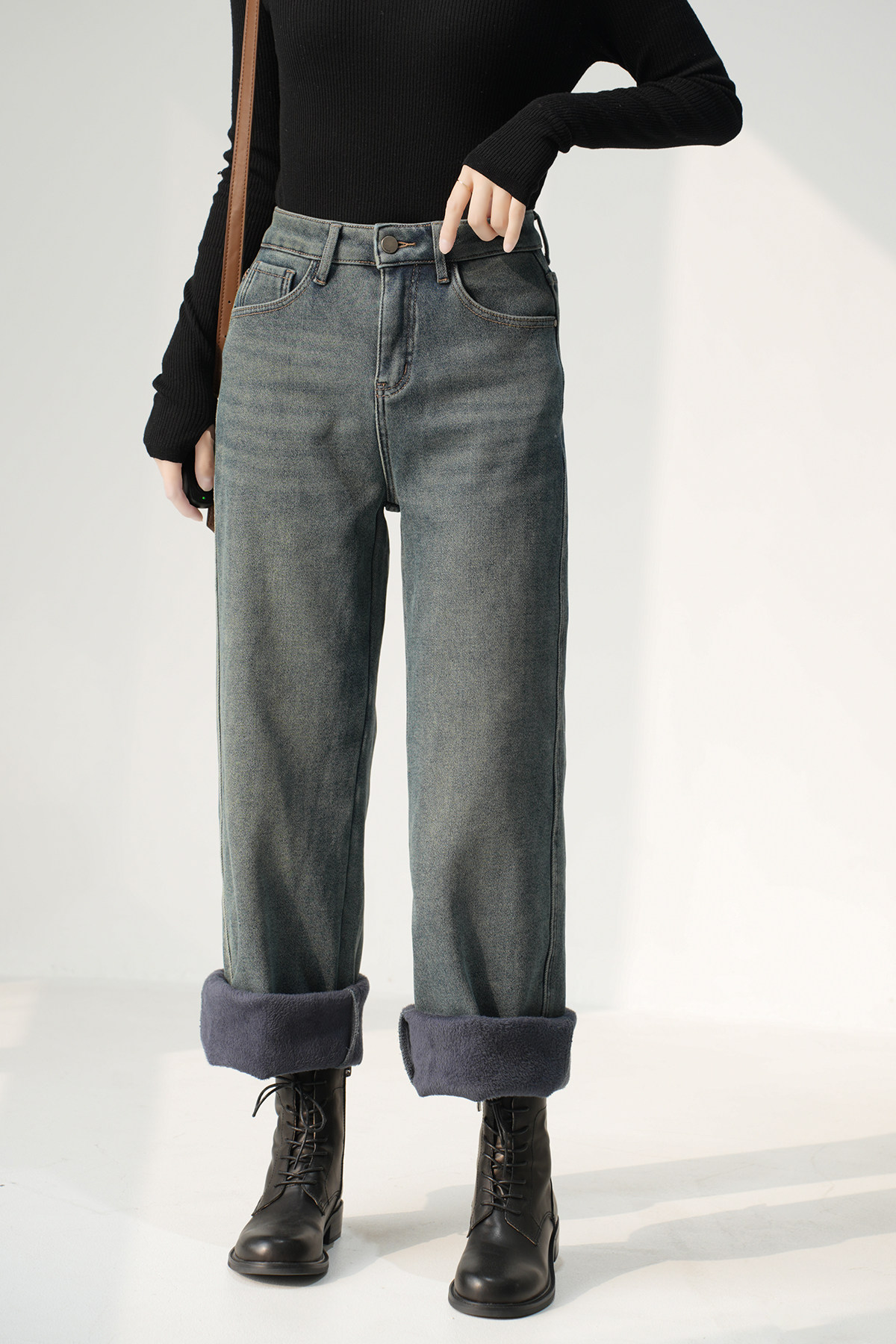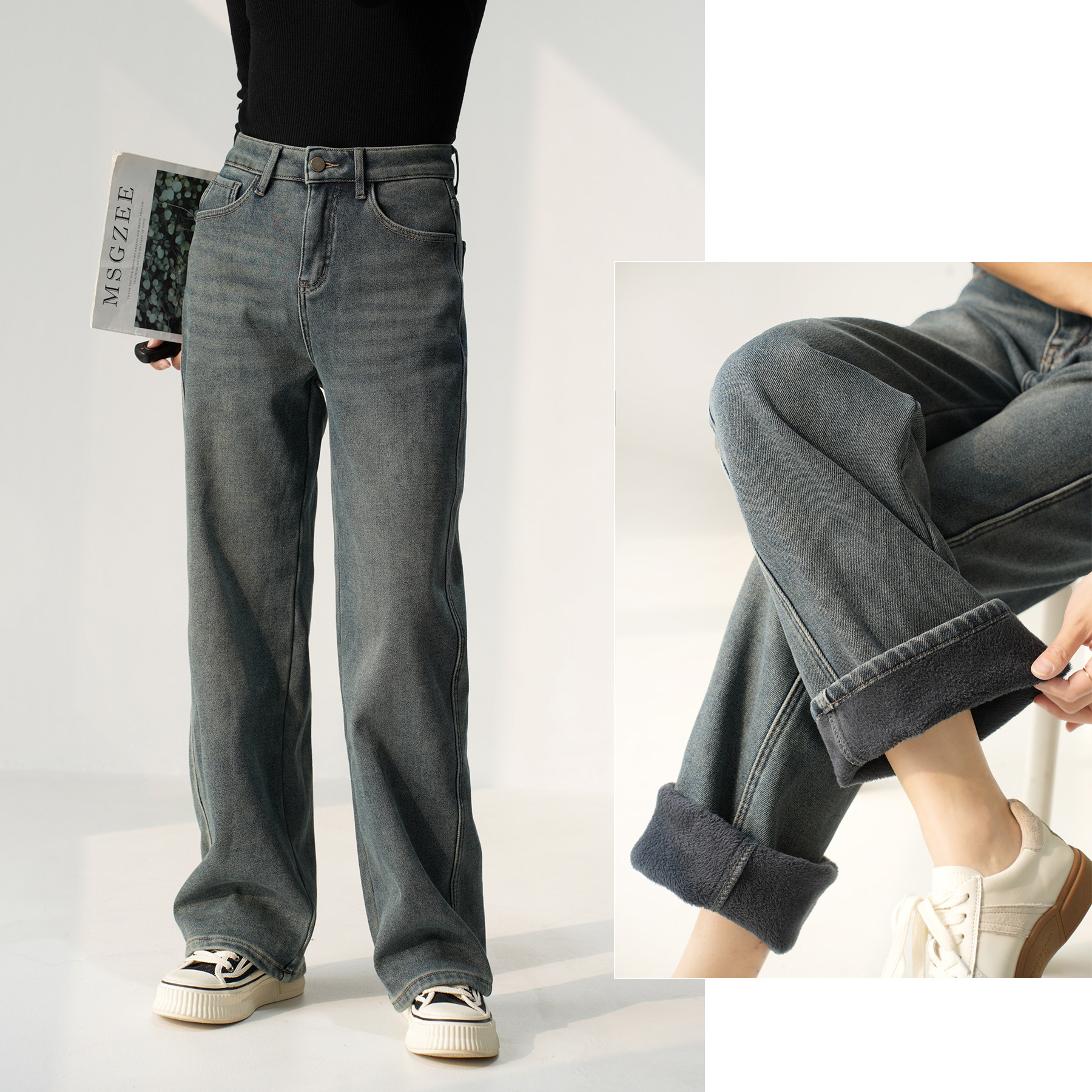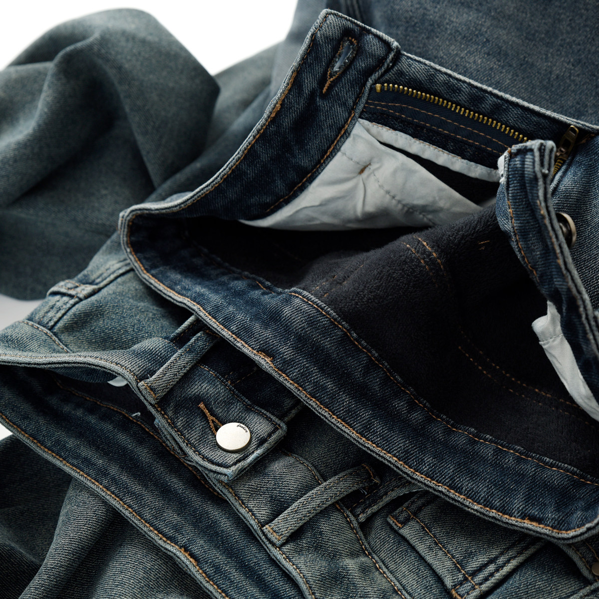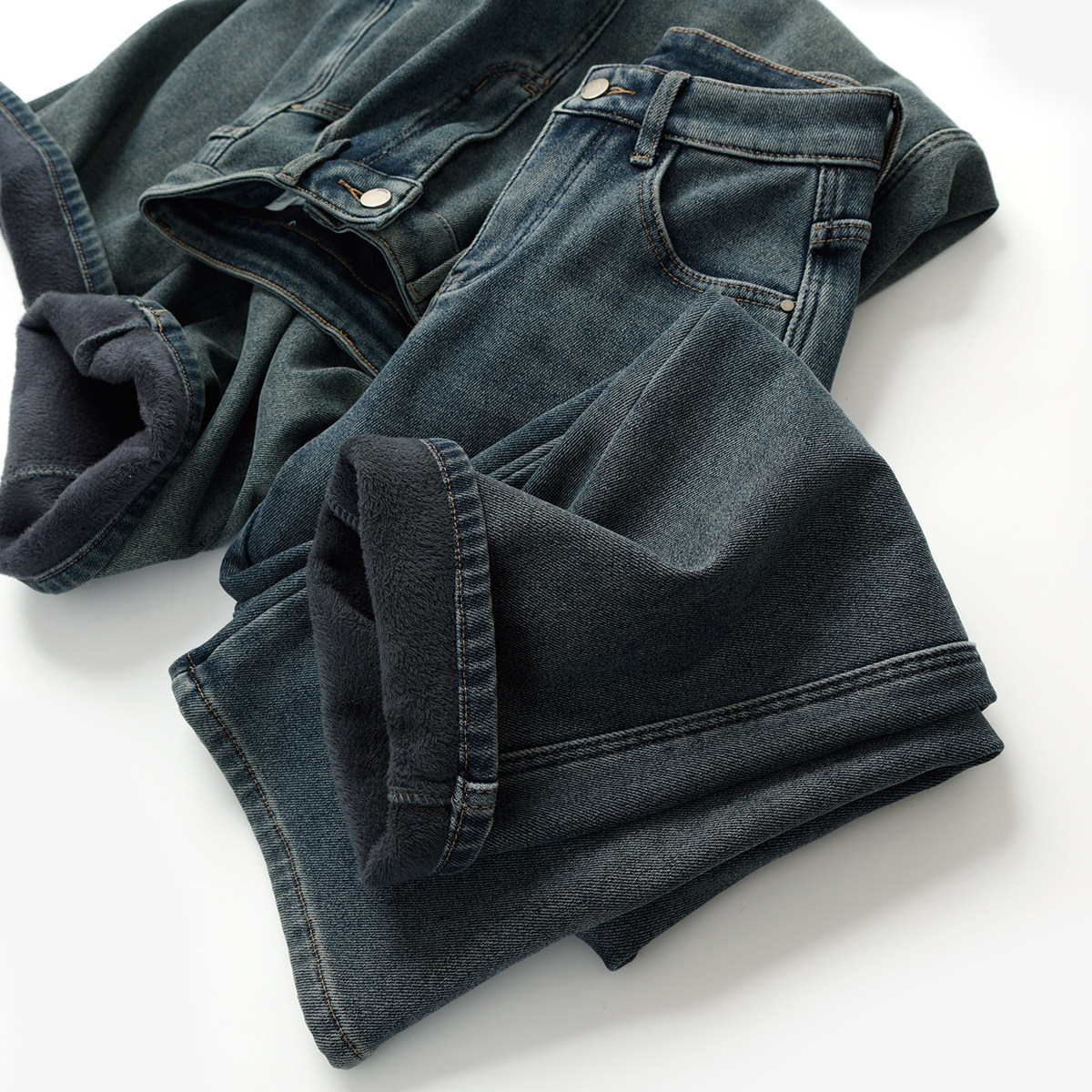 Утепленные джинсы с начесом, бархатные удерживающие тепло штаны, высокая талия
