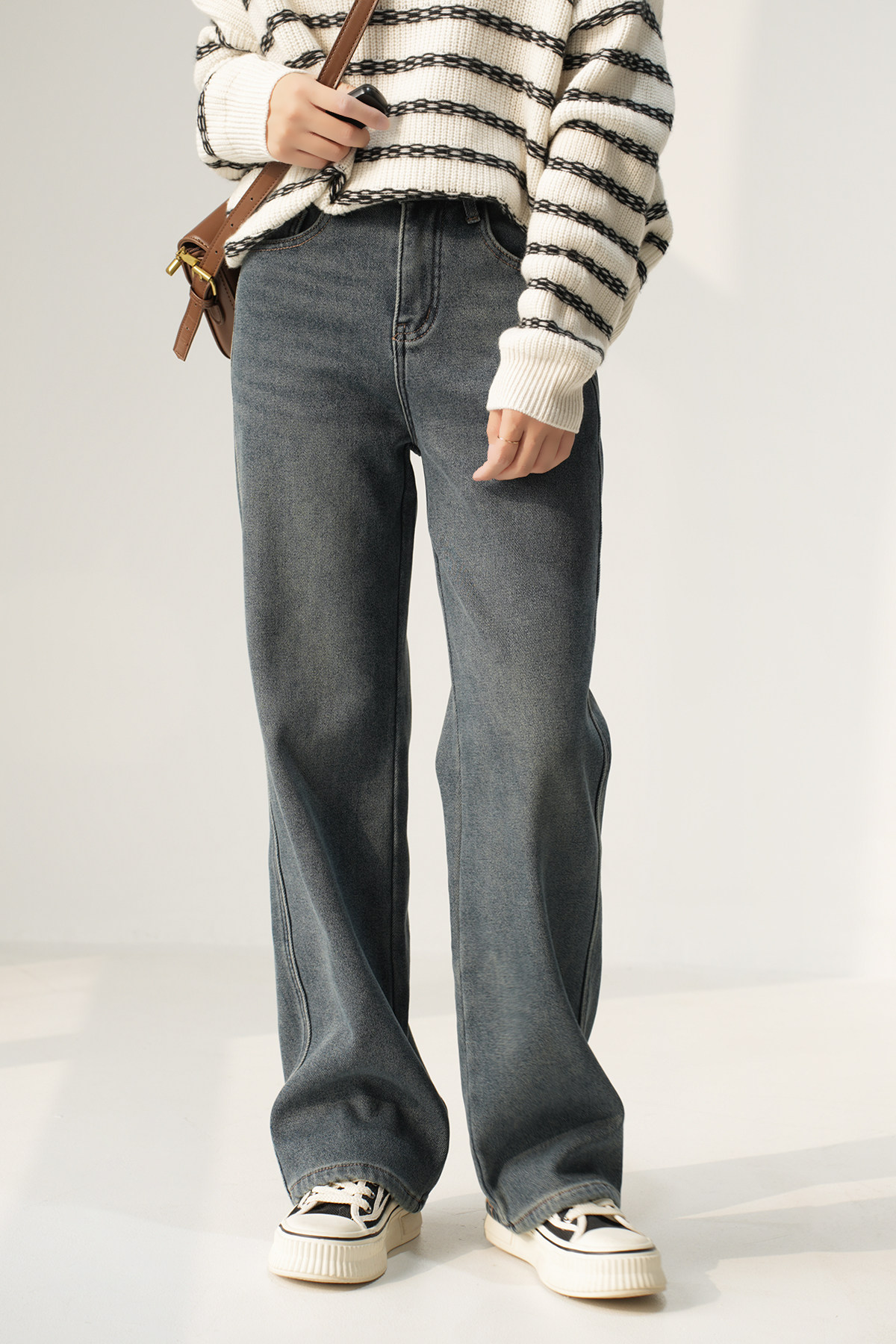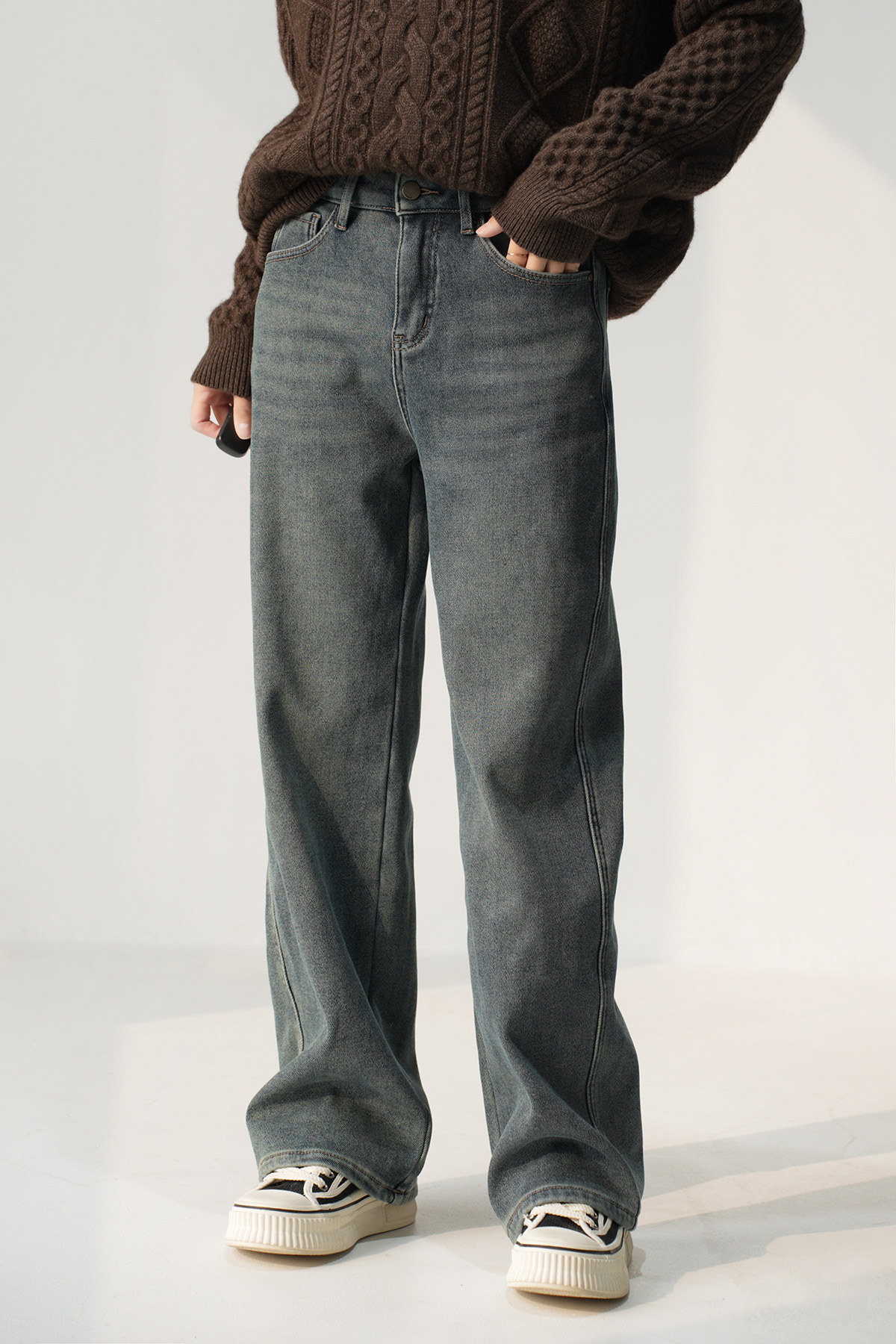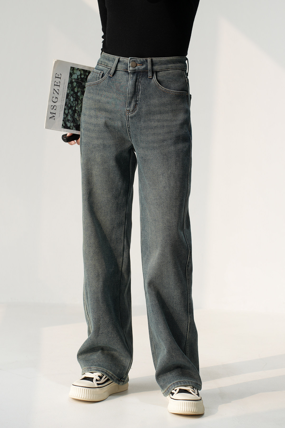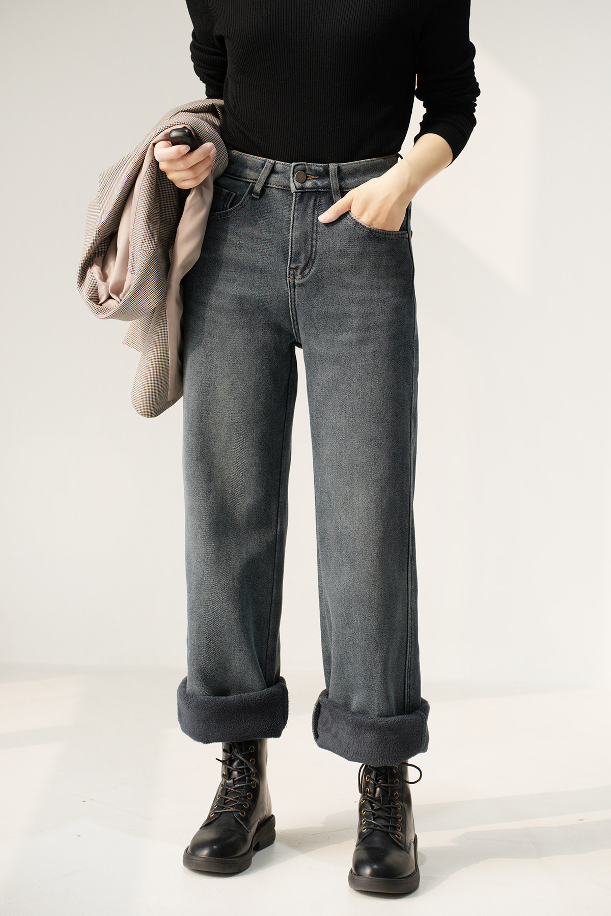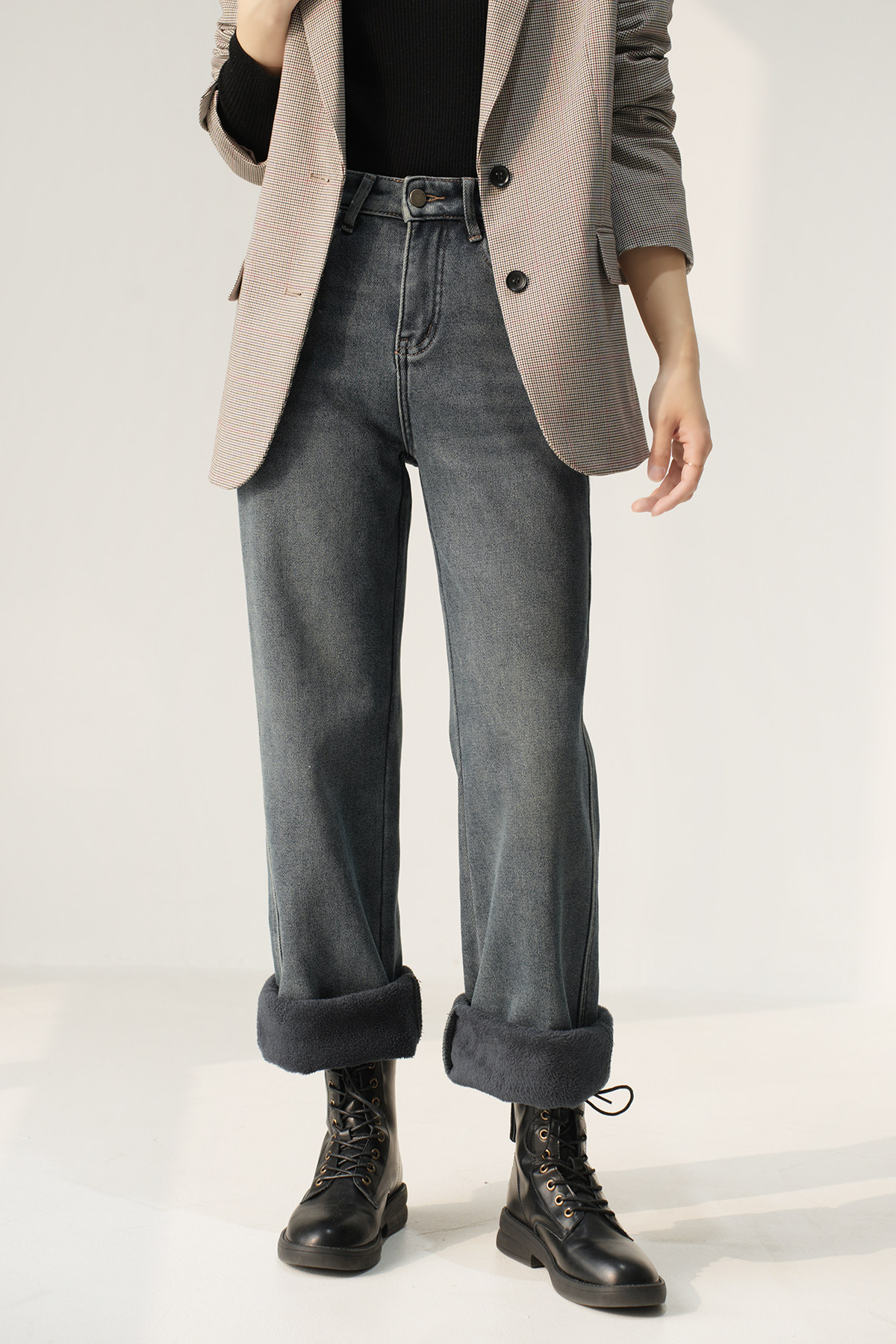 Утепленные джинсы с начесом, бархатные удерживающие тепло штаны, высокая талия
