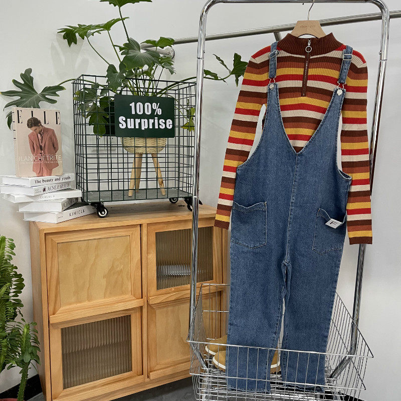 Хлопковый универсальный джинсовый комбинезон, комплект