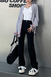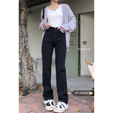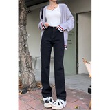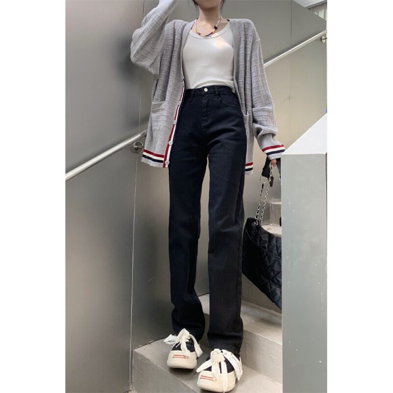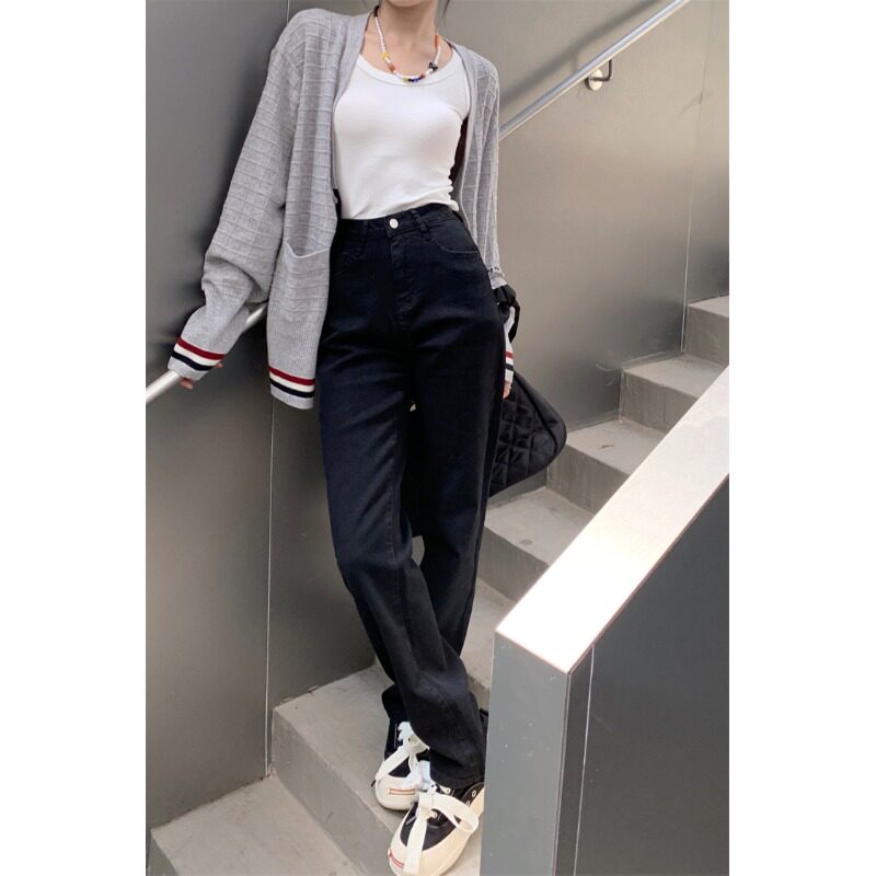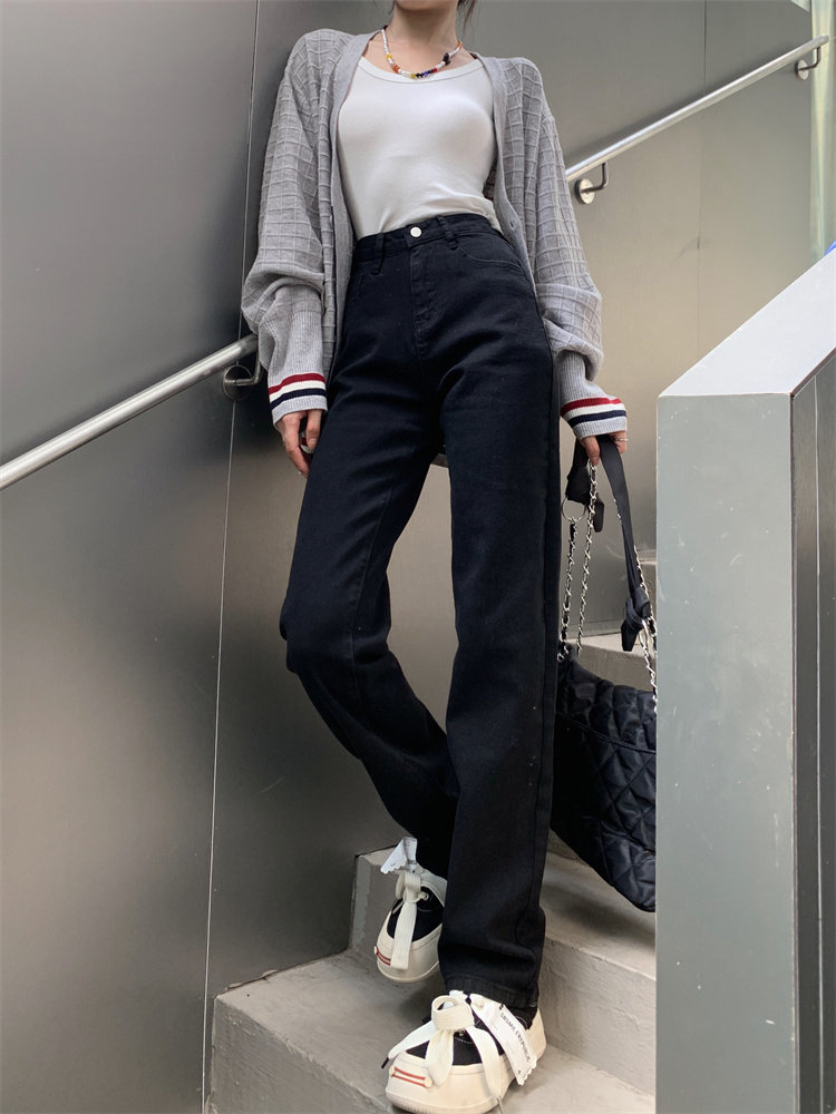 Черные приталенные прямые свободные джинсы, эластичные штаны, подходит для подростков, высокая талия