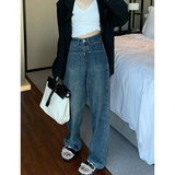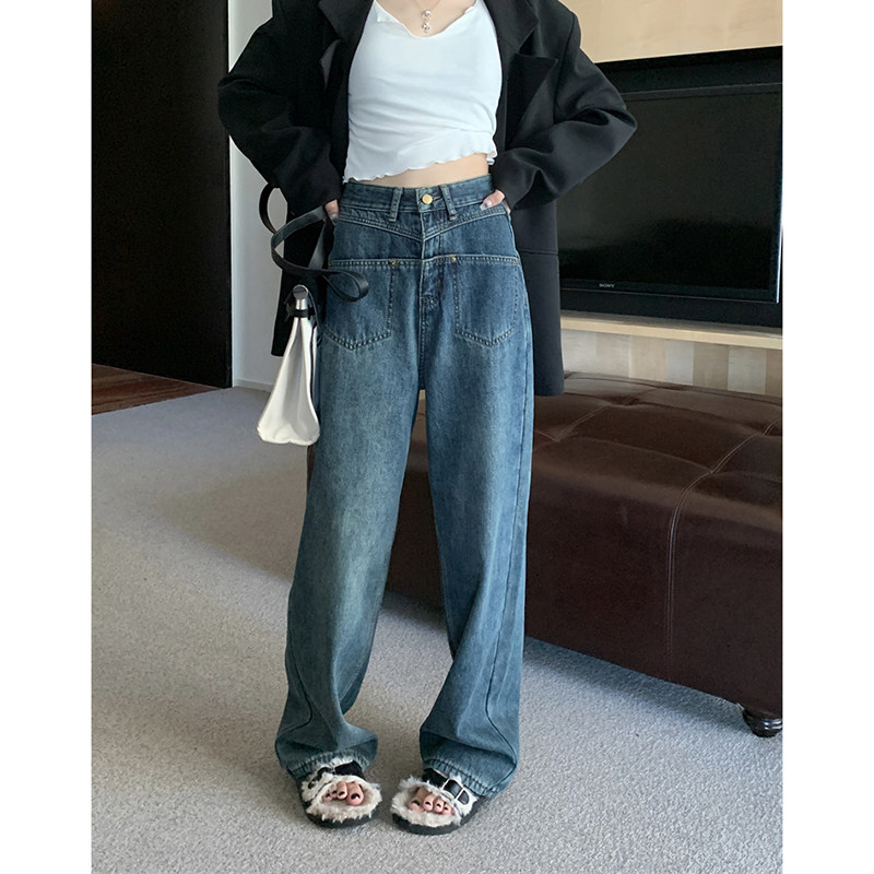 Утепленные осенние джинсы, дизайнерские штаны, высокая талия, тренд сезона, свободный прямой крой