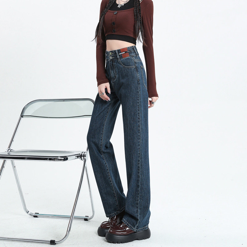 Штаны, тонкие приталенные джинсы, коллекция 2023, высокая талия, свободный прямой крой