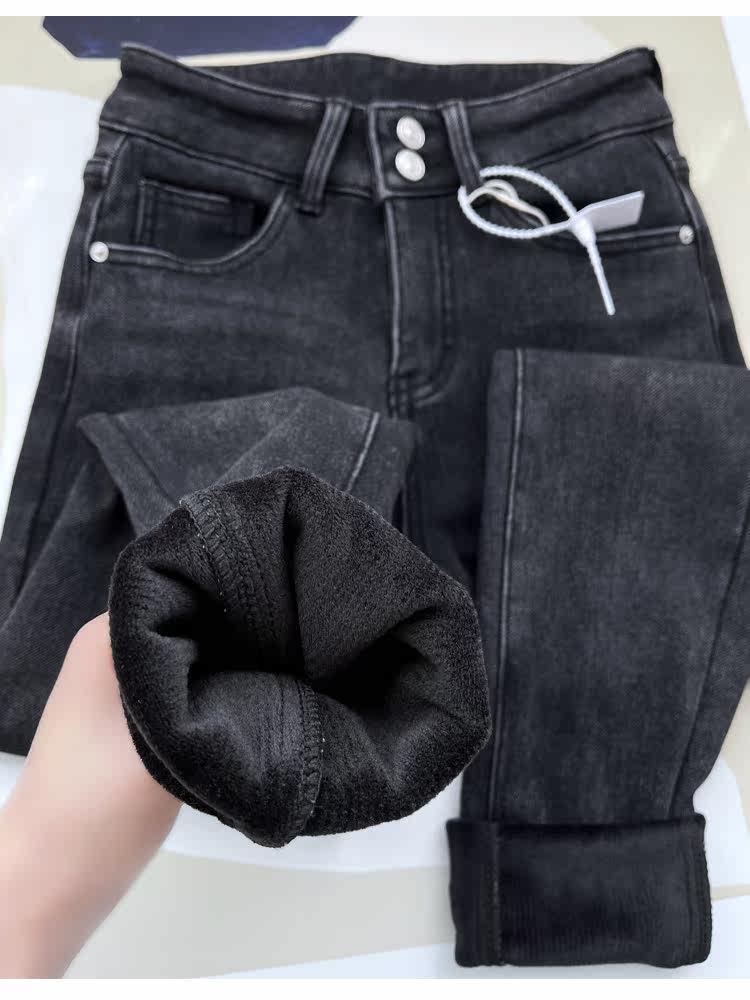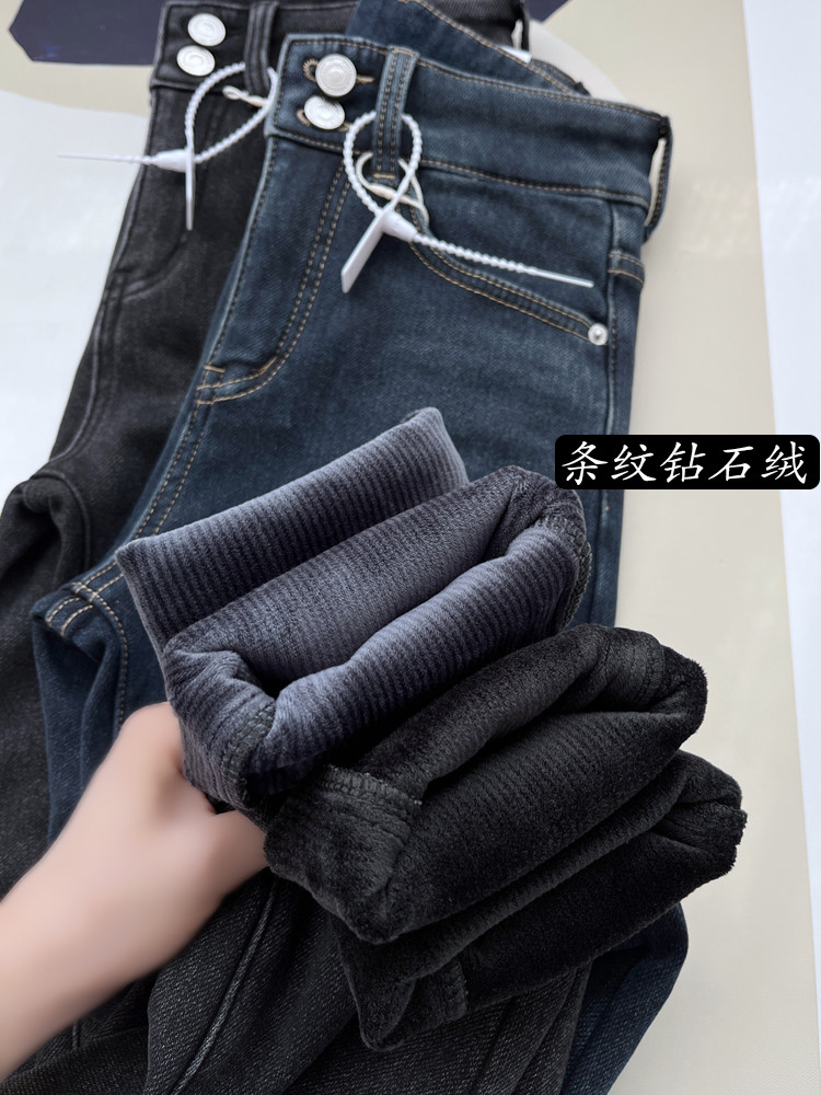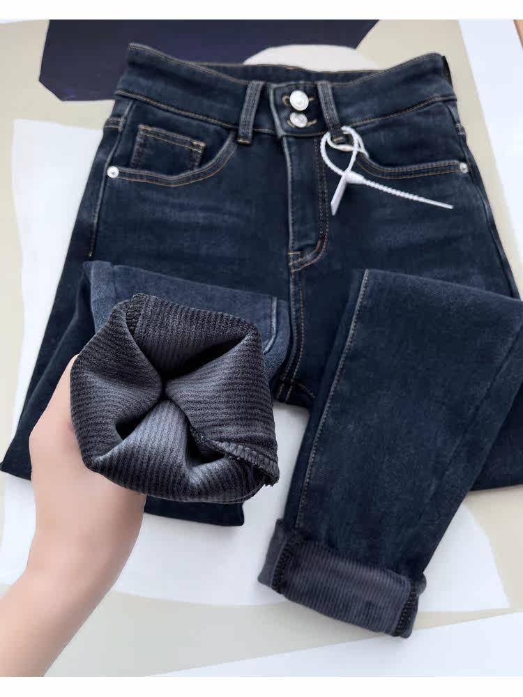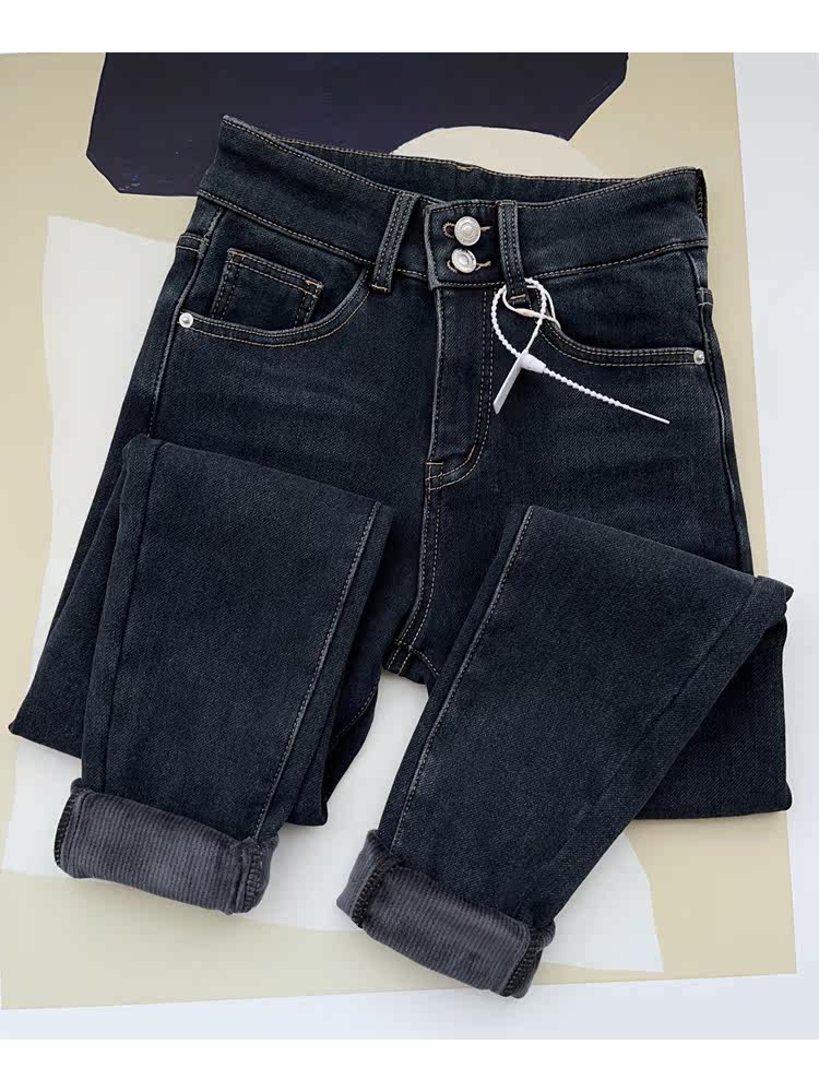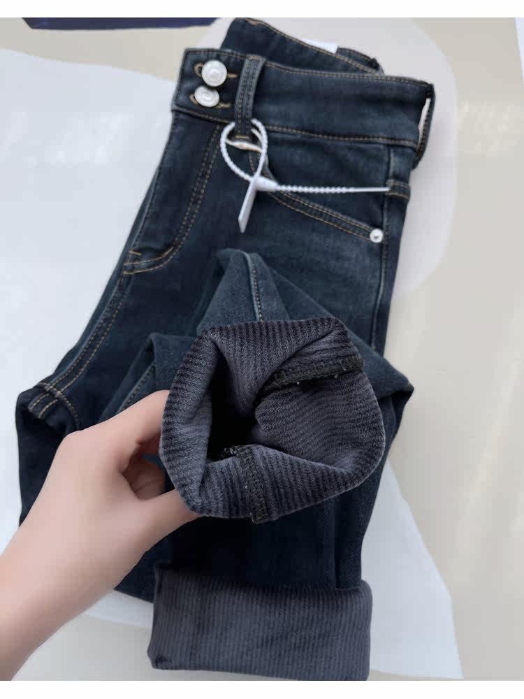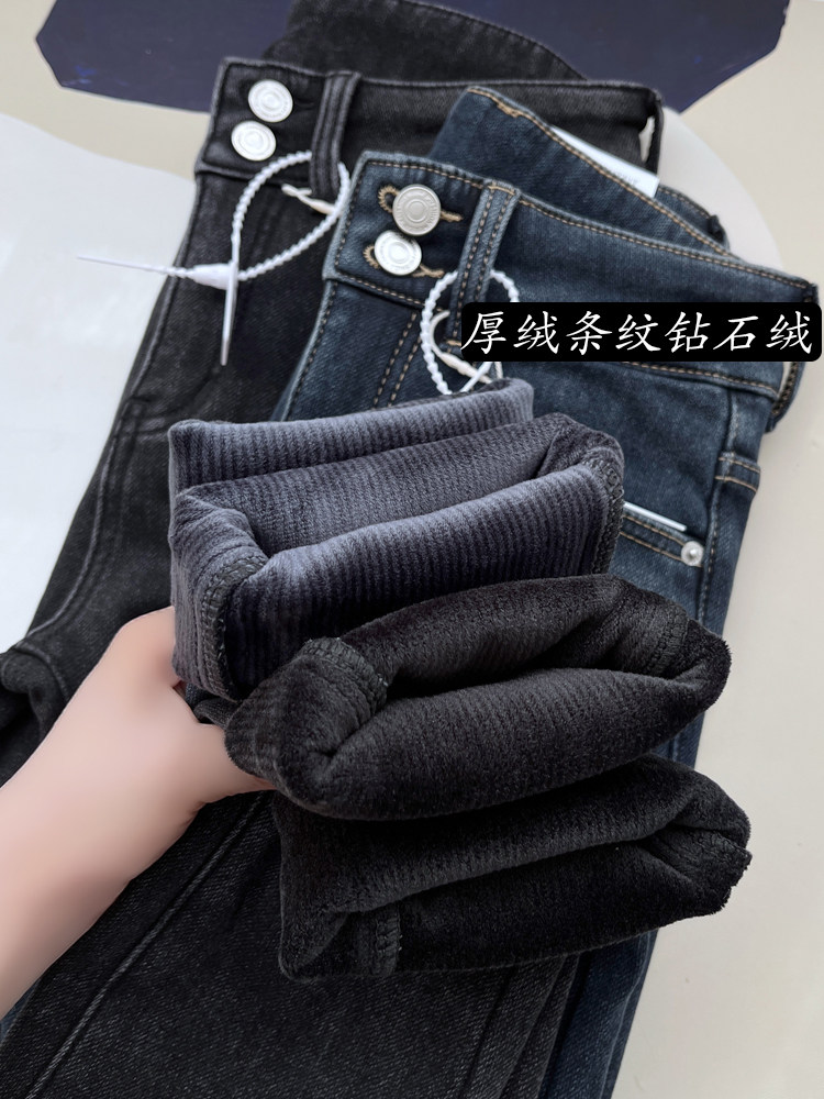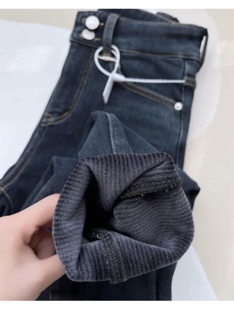 Бархатные флисовые джинсы с начесом, приталенные штаны, высокая талия, увеличенная толщина, в обтяжку