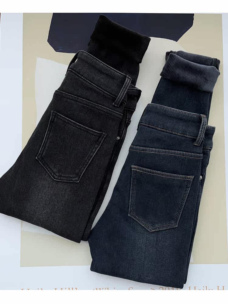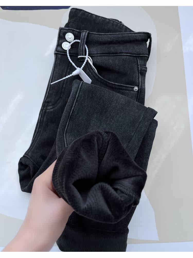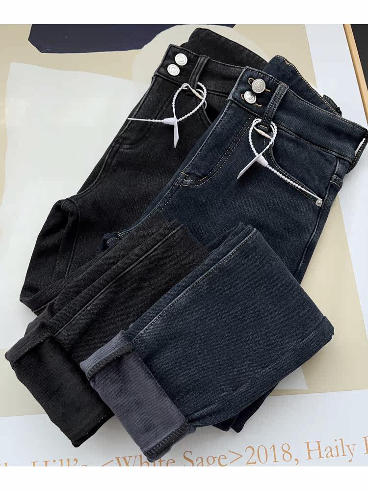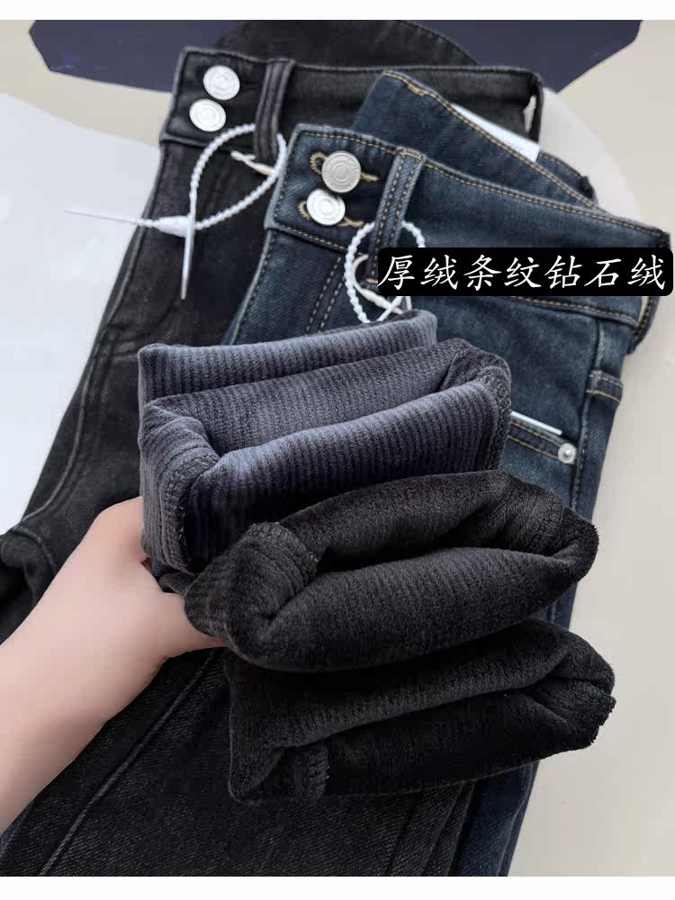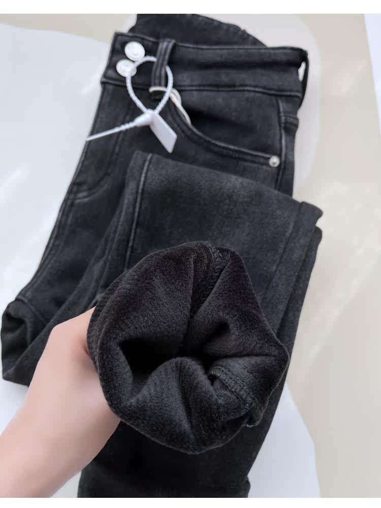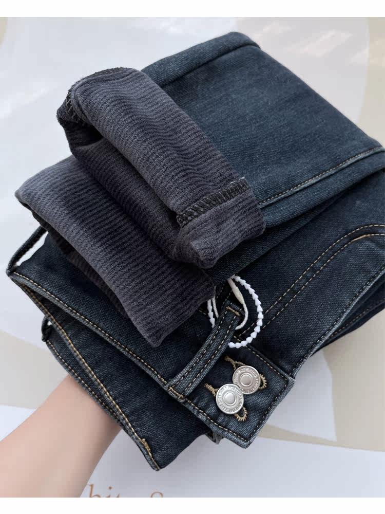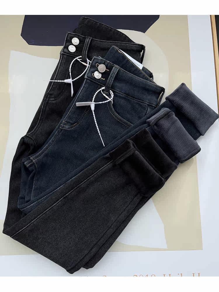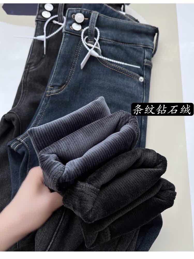 Бархатные флисовые джинсы с начесом, приталенные штаны, высокая талия, увеличенная толщина, в обтяжку