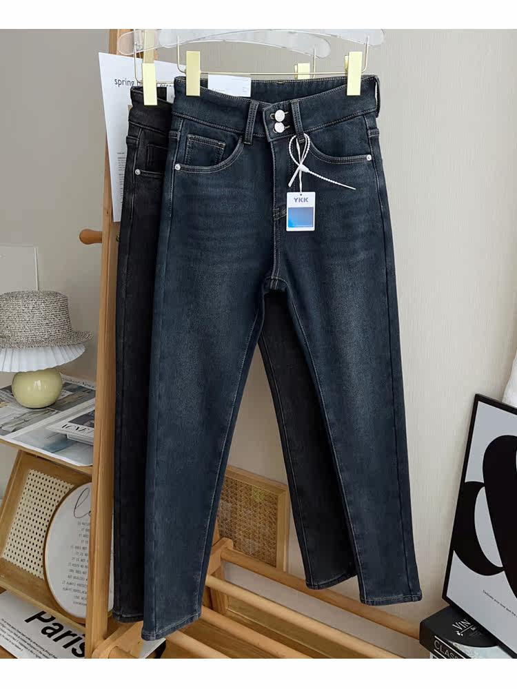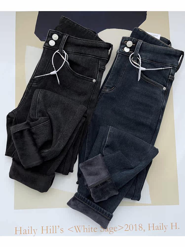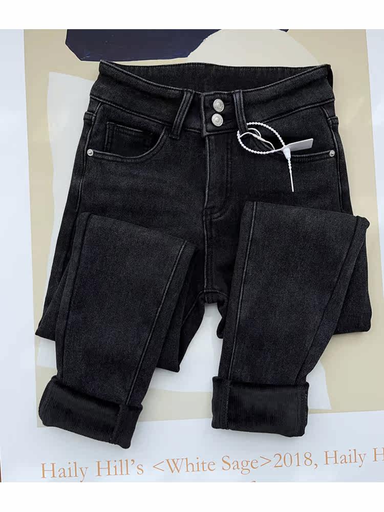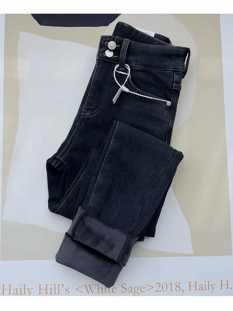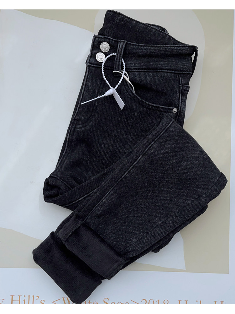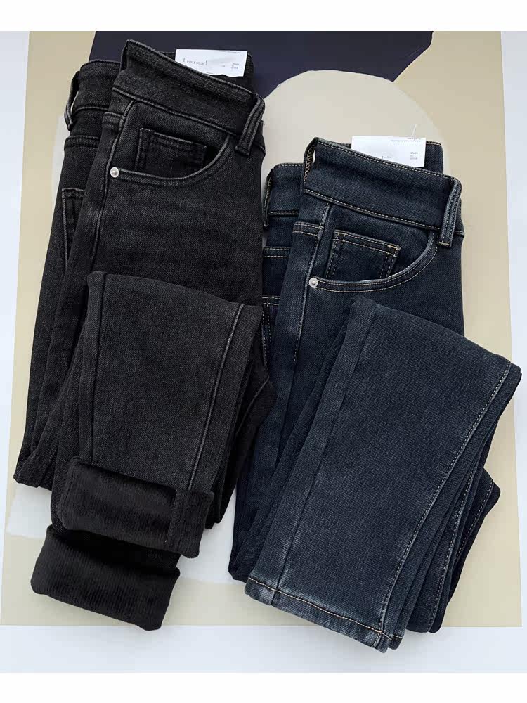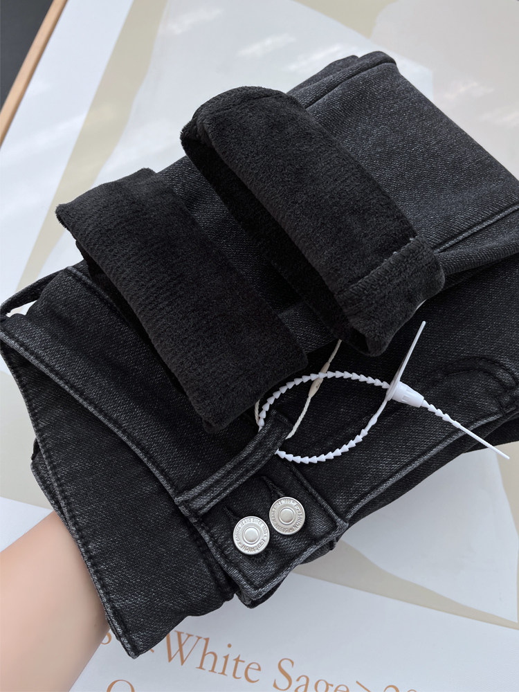 Бархатные флисовые джинсы с начесом, приталенные штаны, высокая талия, увеличенная толщина, в обтяжку