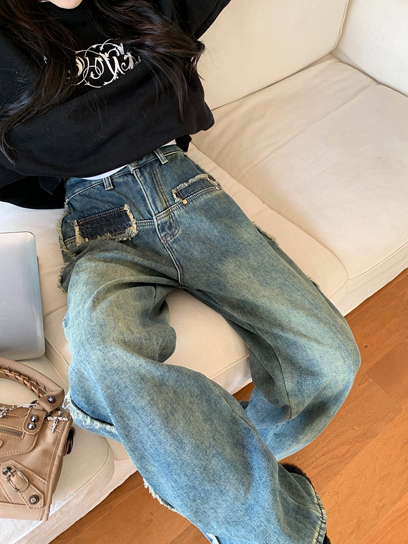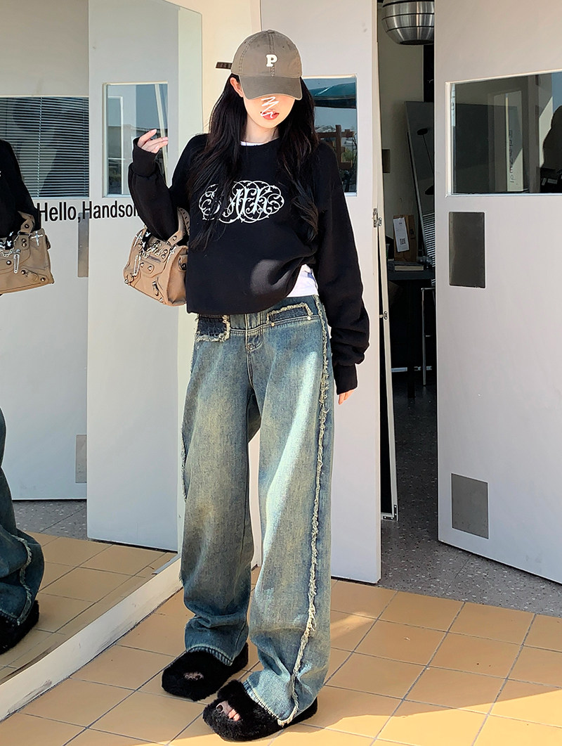 Ретро демисезонные джинсы с начесом, штаны, приталенные леггинсы, свободный прямой крой