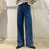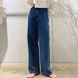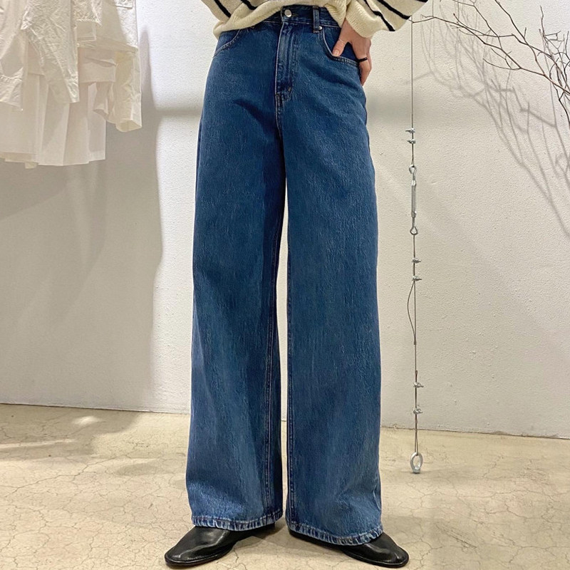 Ретро дизайнерские джинсы, штаны, в корейском стиле, осенние, яркий броский стиль, высокая талия, свободный крой