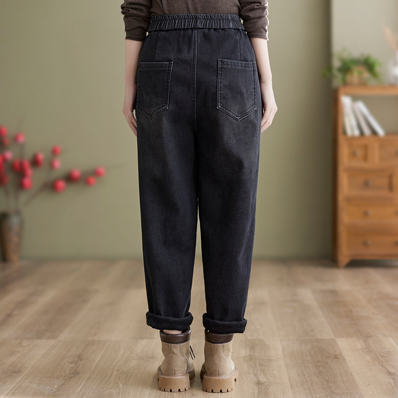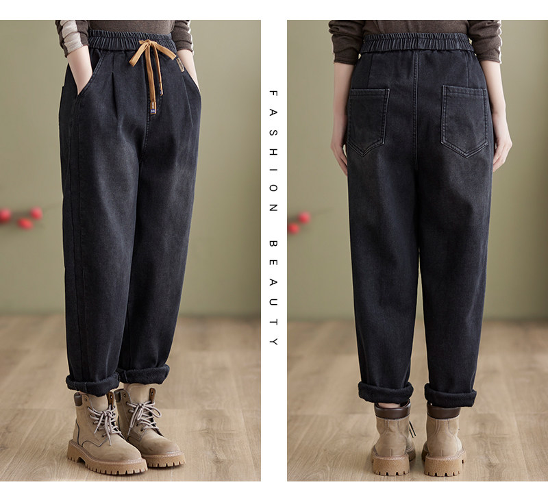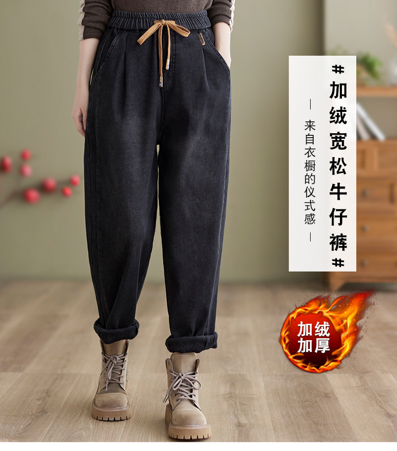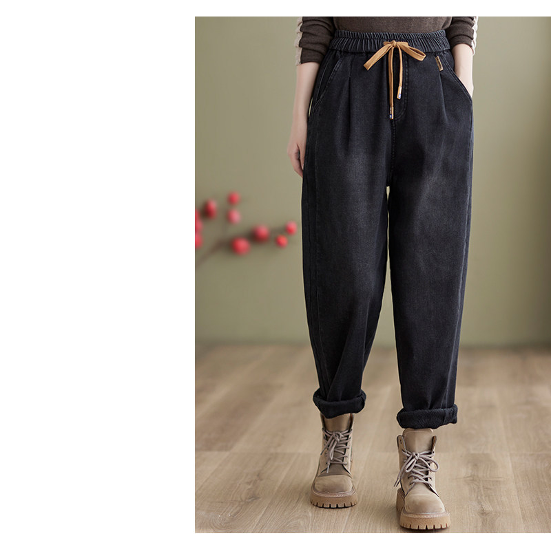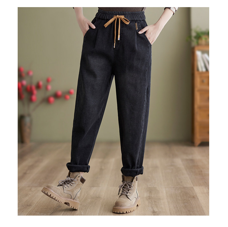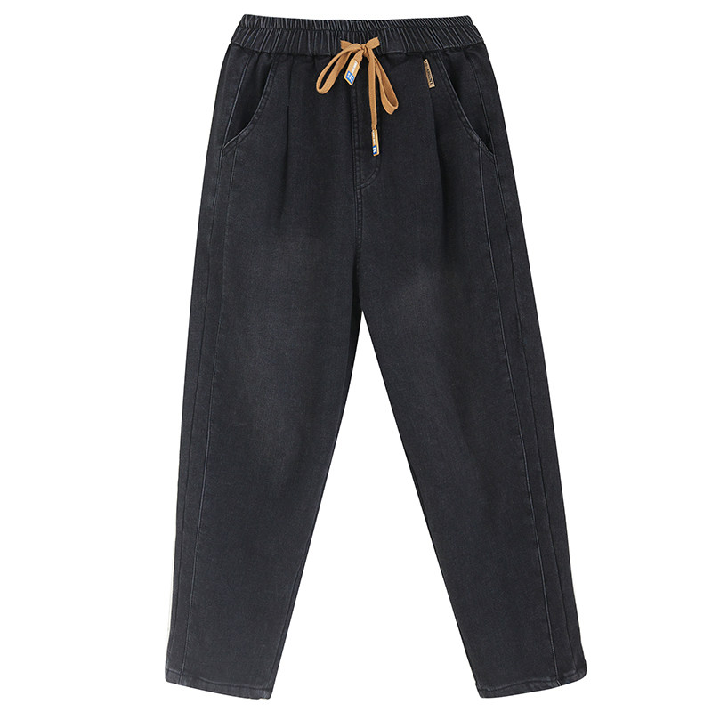 Зимние джинсы с начесом, штаны, оверсайз, эластичная талия, на шнурках, по фигуре