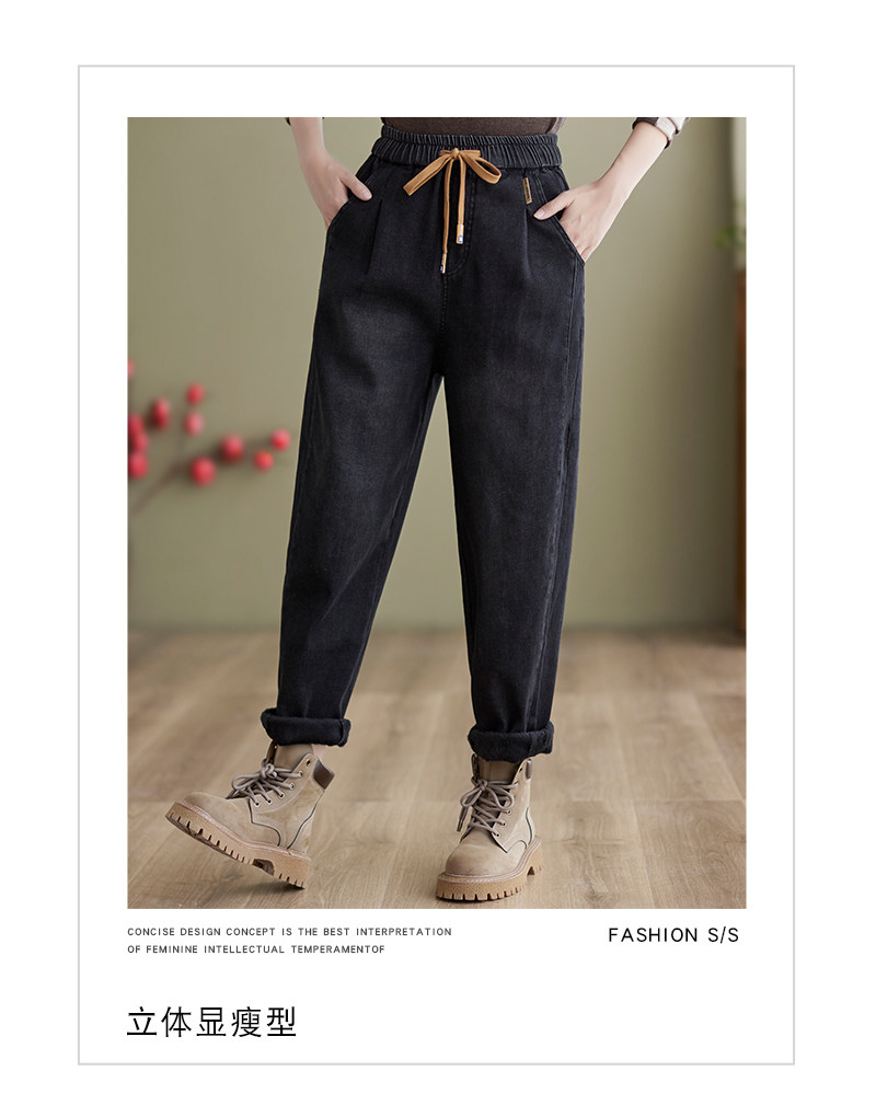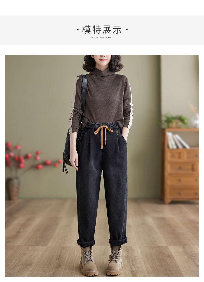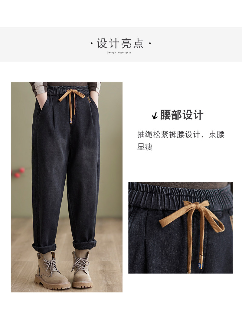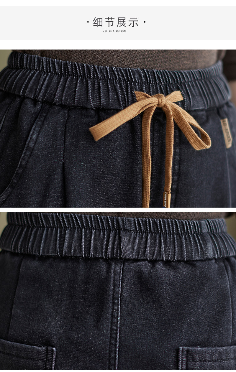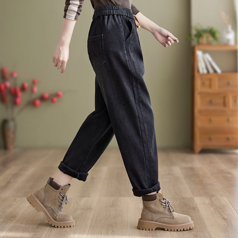 Зимние джинсы с начесом, штаны, оверсайз, эластичная талия, на шнурках, по фигуре