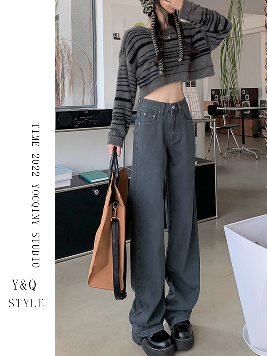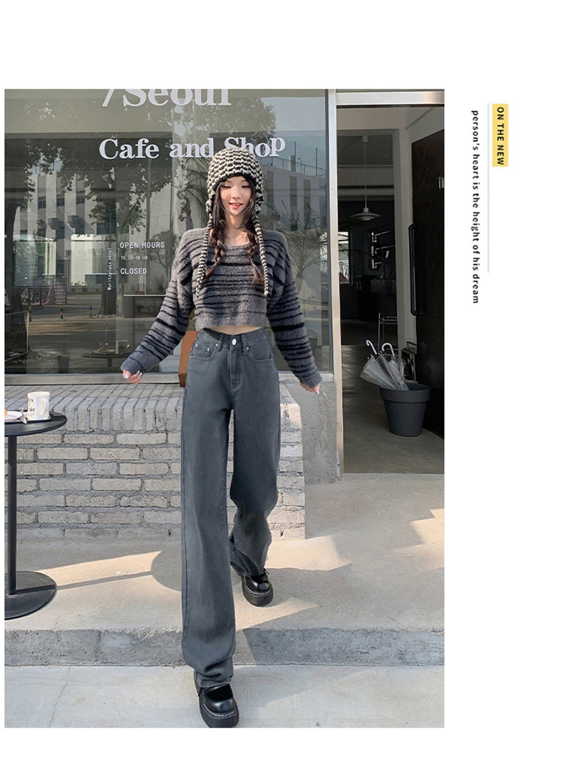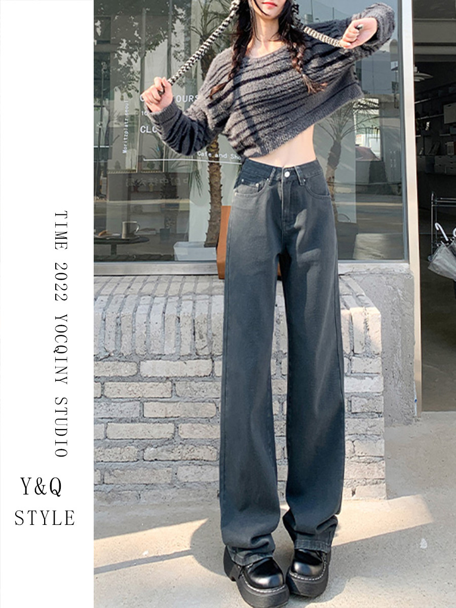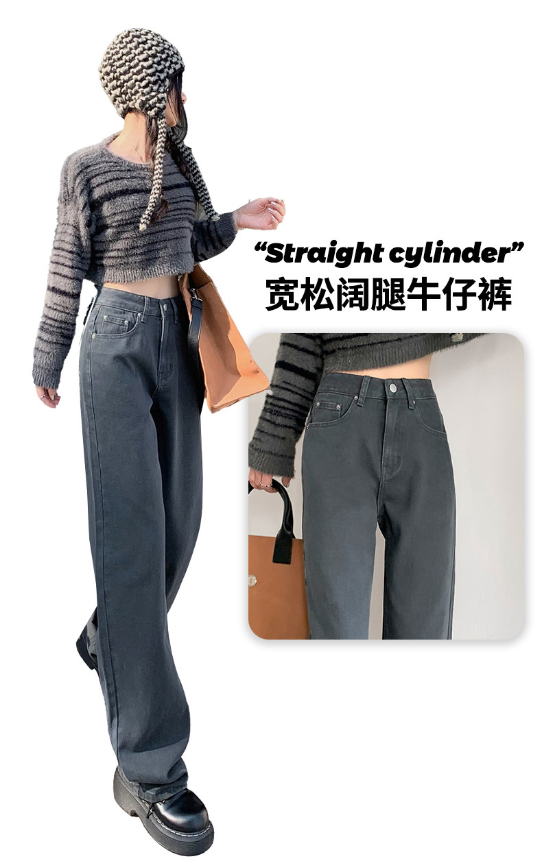 Космические прямые свободные джинсы, демисезонные длинные флисовые штаны, свободный прямой крой, высокая талия, по фигуре, оверсайз