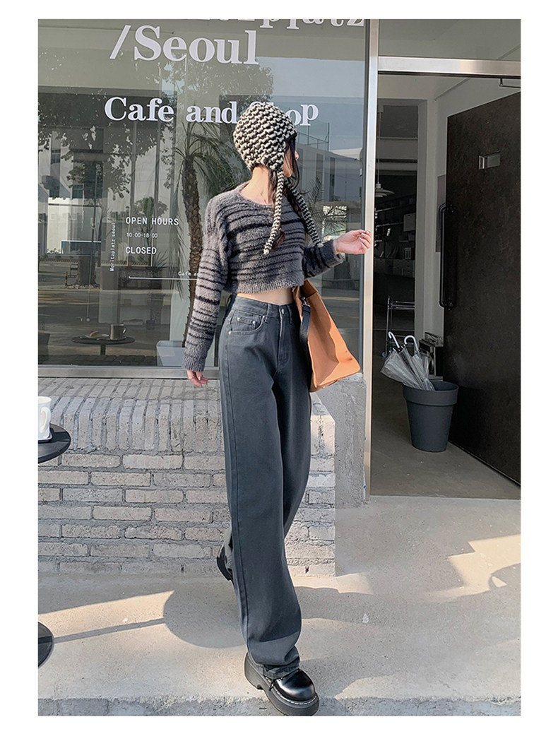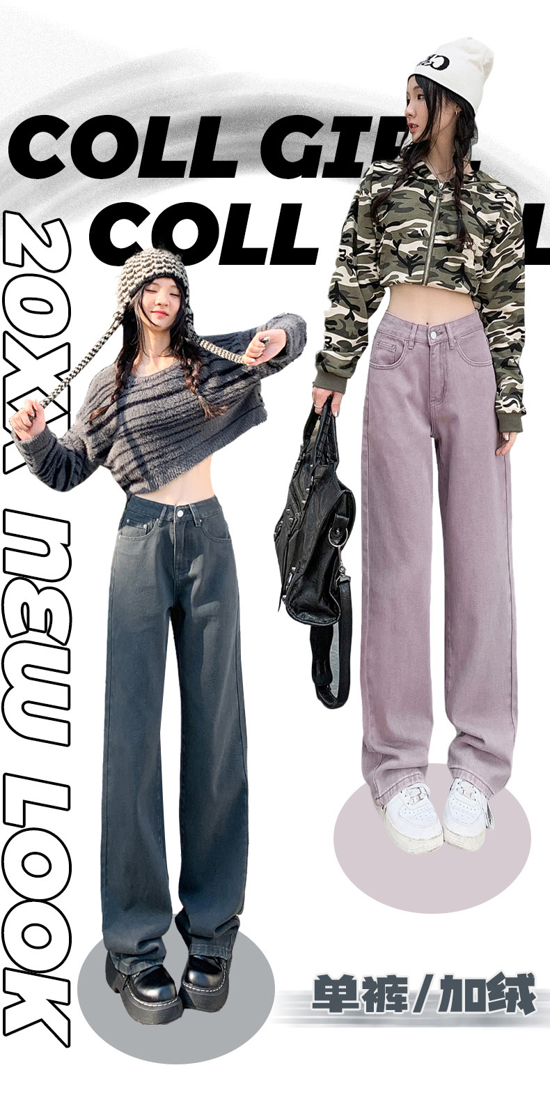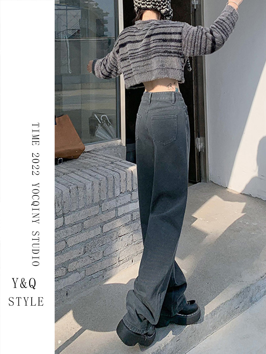 Космические прямые свободные джинсы, демисезонные длинные флисовые штаны, свободный прямой крой, высокая талия, по фигуре, оверсайз
