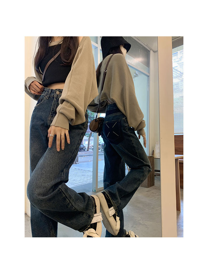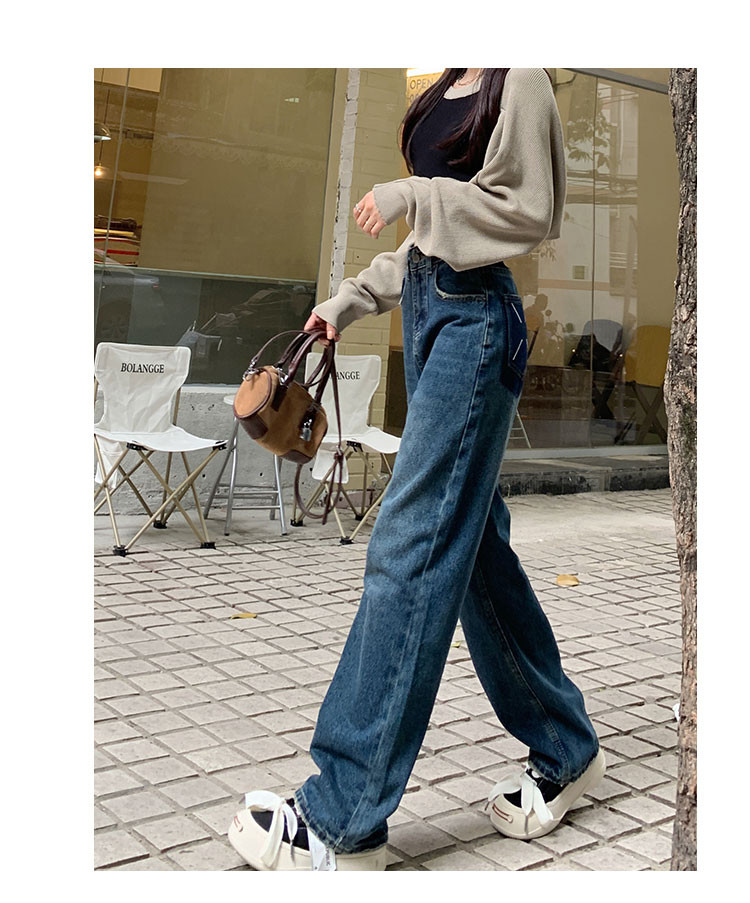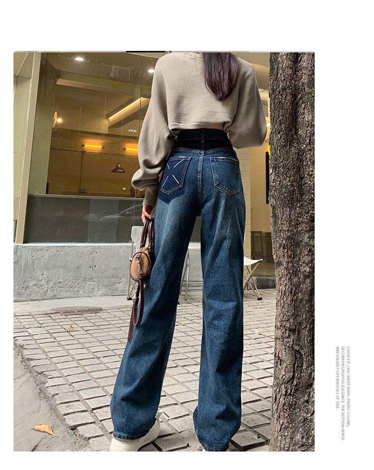 Синие осенние джинсы, штаны, свободный прямой крой