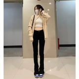 Длинные демисезонные джинсы, штаны, леггинсы, эластичные штаны-клёш, облегающий крой