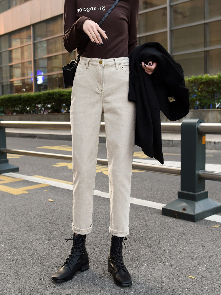 Флисовые прямые свободные джинсы, весенние штаны, подходит для подростков, увеличенная толщина, высокая талия, свободный крой