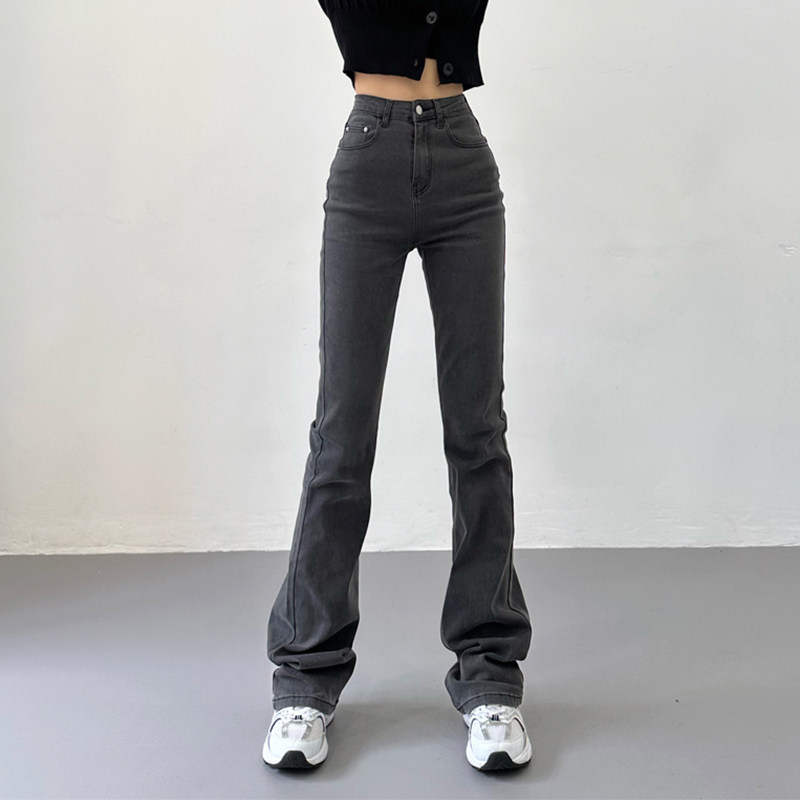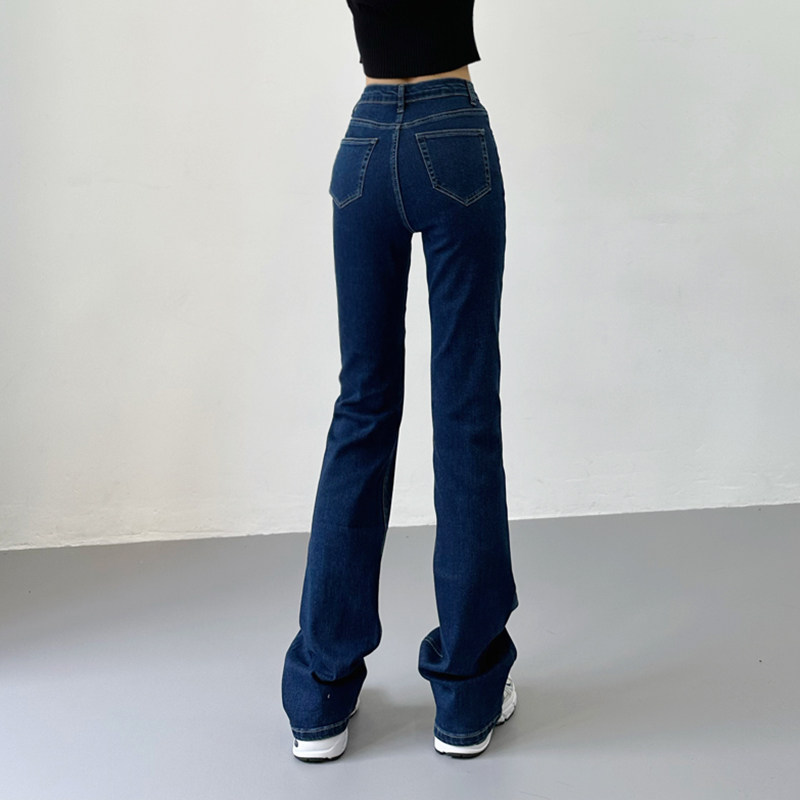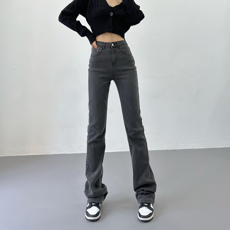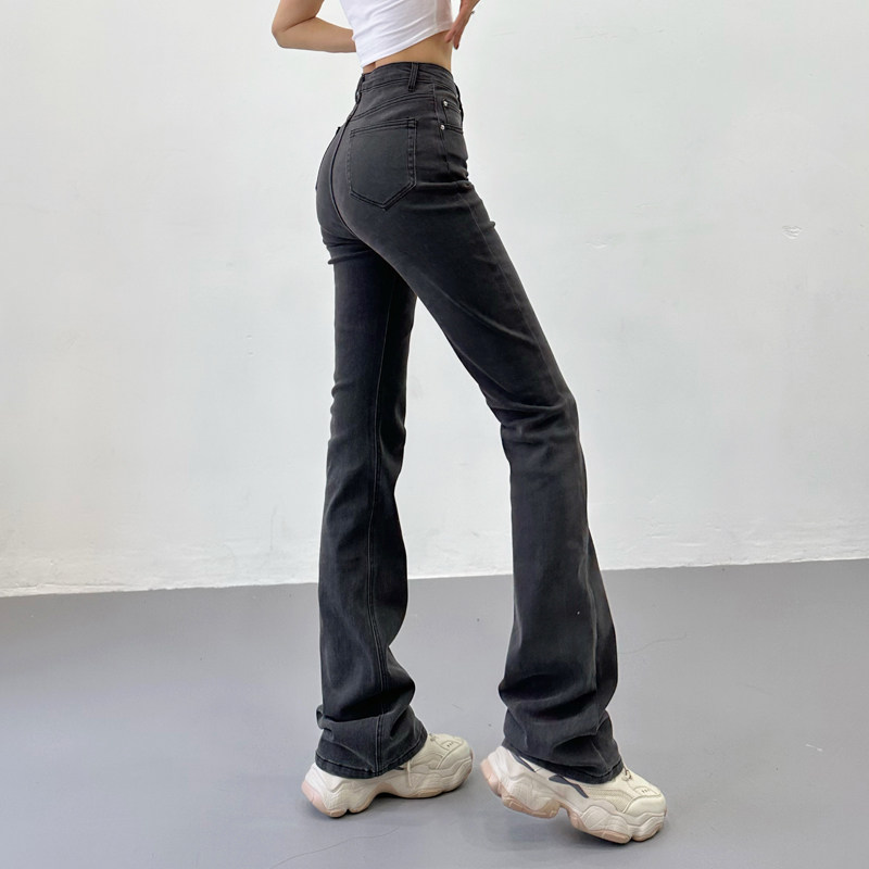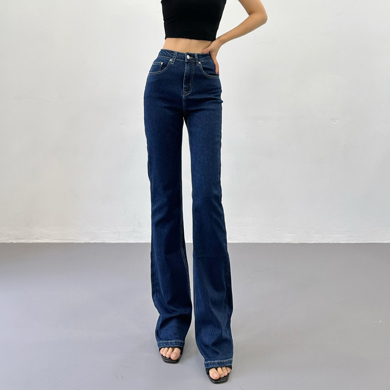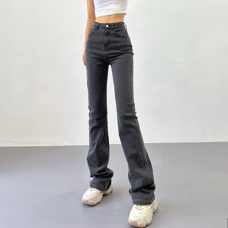 Приталенные ретро эластичные джинсы, длинные штаны, высокая талия, свободный прямой крой
