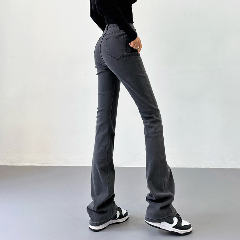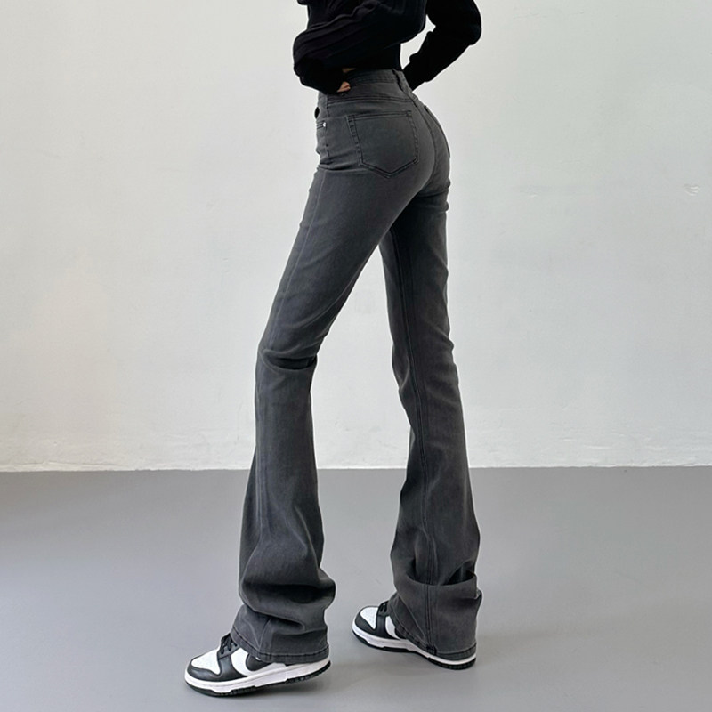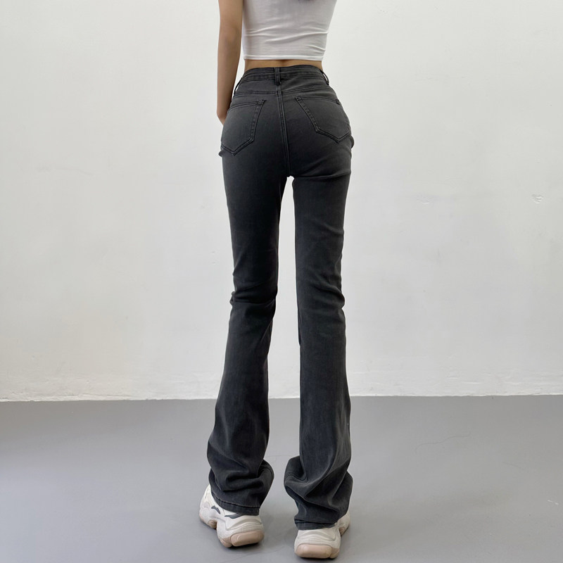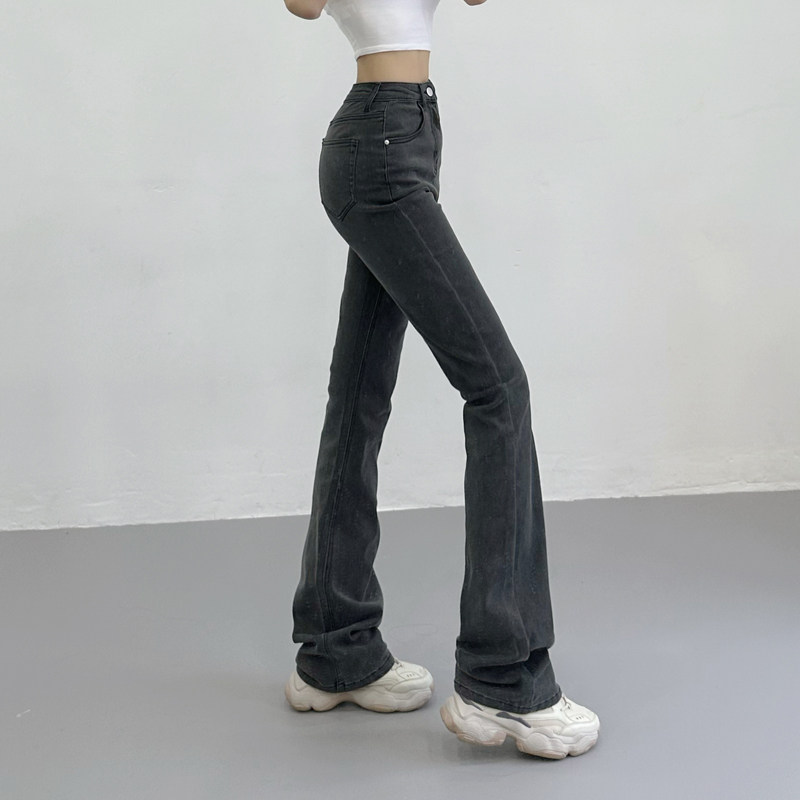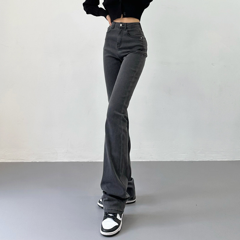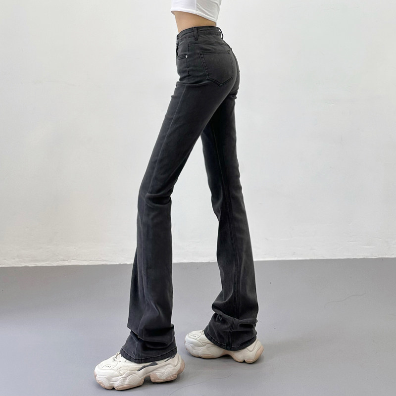 Приталенные ретро эластичные джинсы, длинные штаны, высокая талия, свободный прямой крой