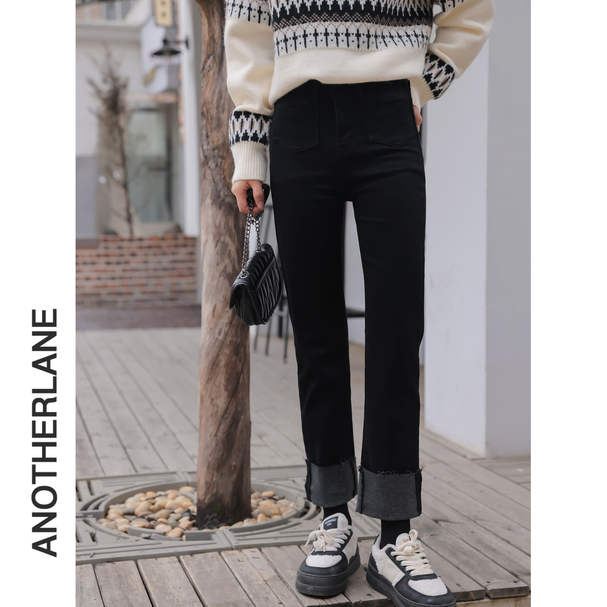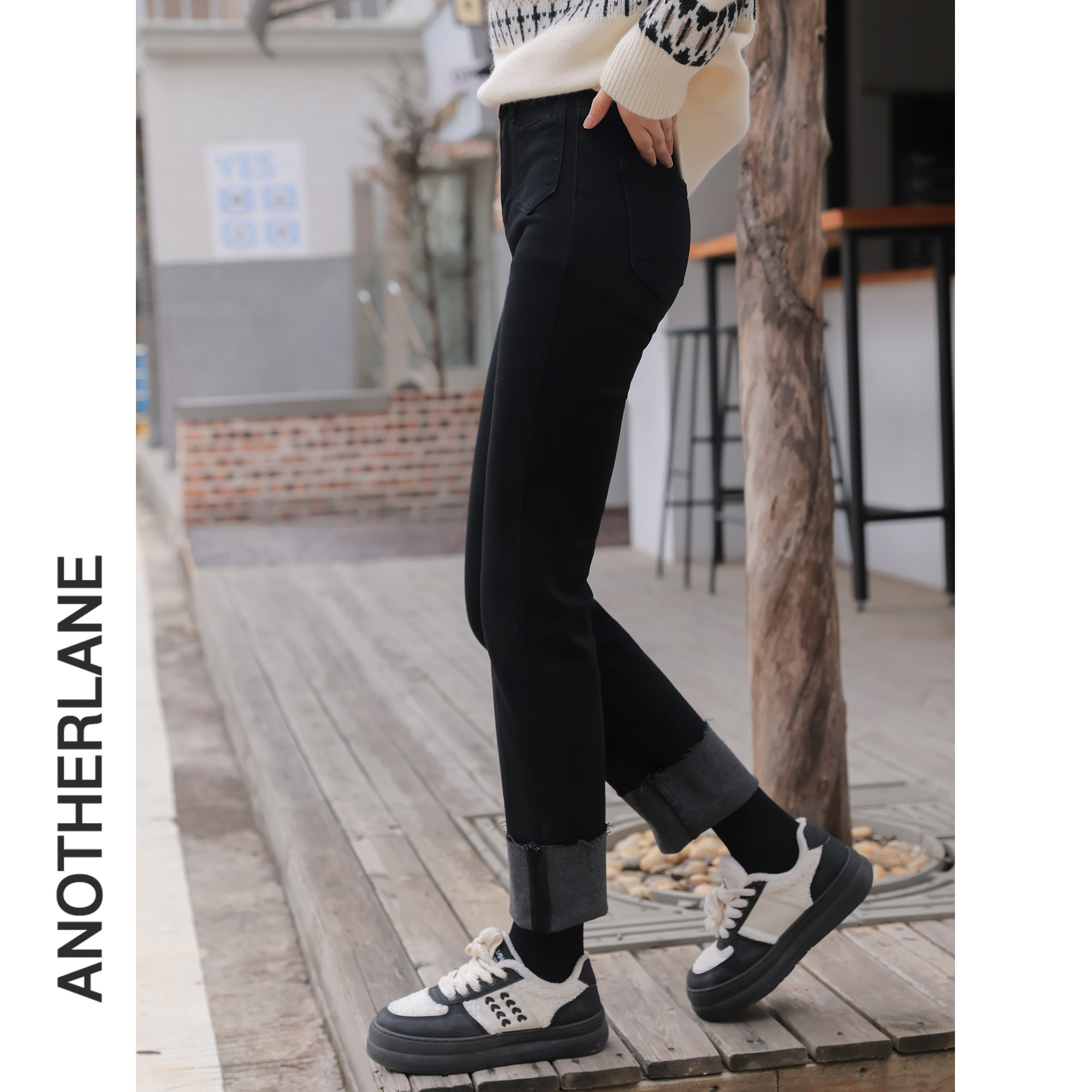 Черные зимние ретро дизайнерские джинсы с начесом, штаны, тренд сезона, высокая талия, свободный прямой крой, увеличенная толщина
