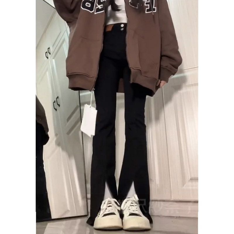 Черные демисезонные джинсы, штаны, леггинсы, приталенные штаны-клёш, коллекция 2022, новая коллекция, подходят для подростков, высокая талия, свободный прямой крой