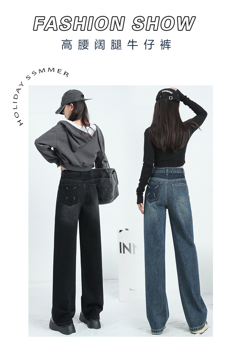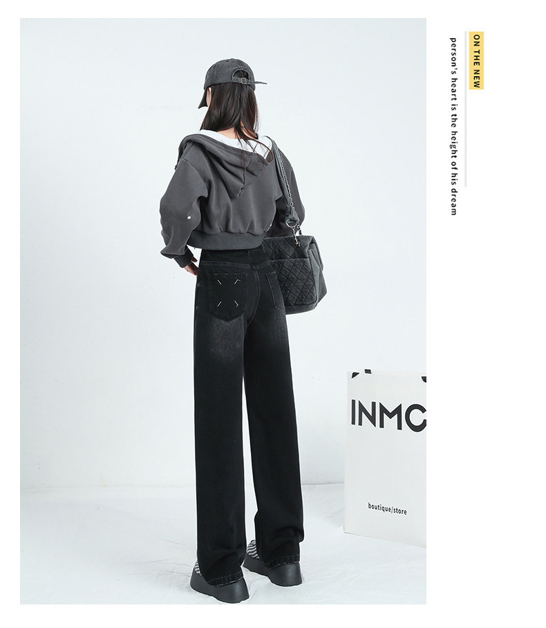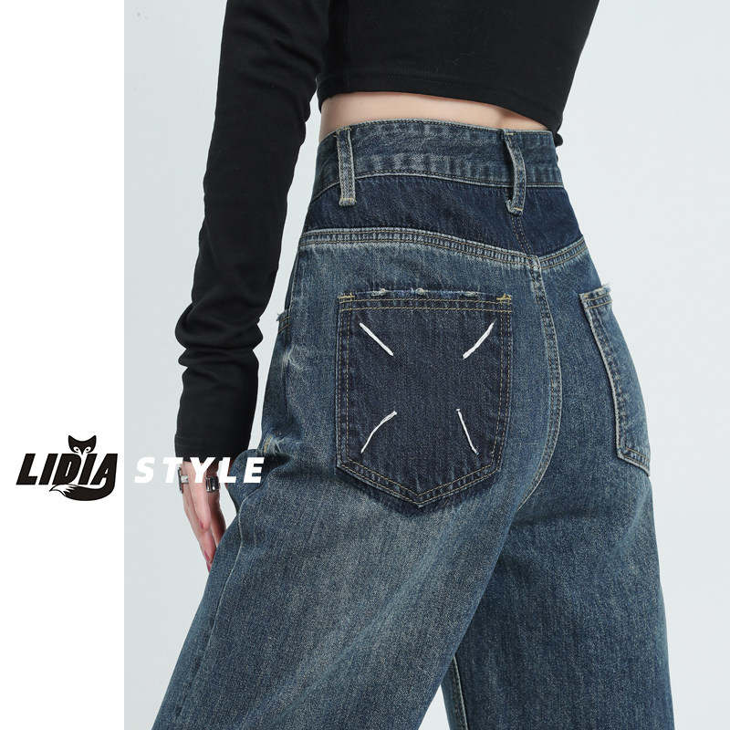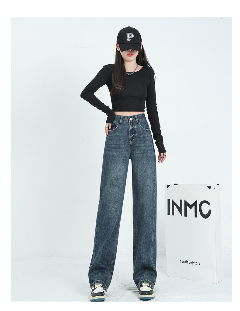 Демисезонные джинсы, штаны, приталенные леггинсы, коллекция 2023, для формы тела «груша», высокая талия, свободный прямой крой
